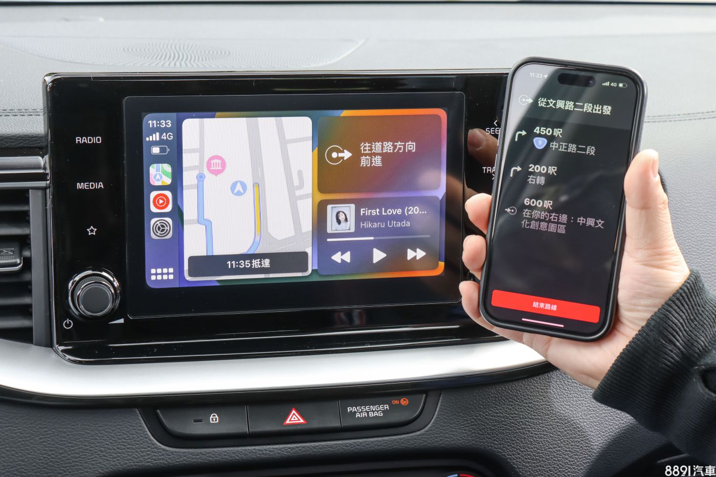 雖然多媒體系統沒有提供原廠導航,但車載螢幕可以支援無線Apple CarPlay/Android Auto,導航功能不用煩惱,也不愁沒有帶到傳輸線,沒有一併標配手機無線充電座,大概是唯一美中不足之處。