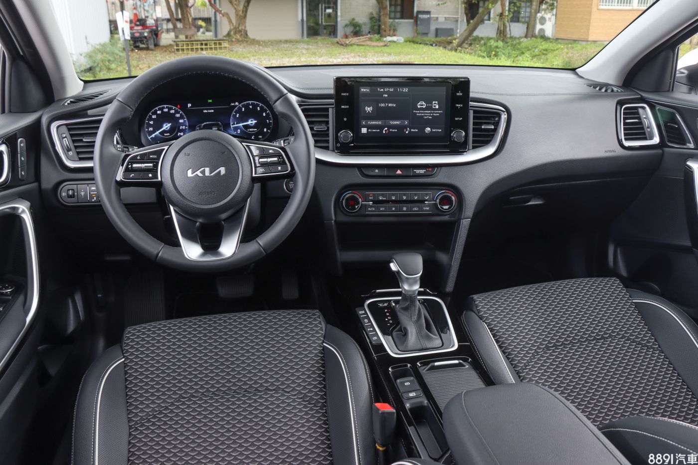 座艙維持小改前的鋪陳,採用駕駛者為導向的布局,實體按鍵不少,不過在接觸過Sportage、EV6等Kia等新世代車款後,這樣的座艙氛圍便會顯得老成。內裝用料算是值得稱讚之處,儀錶台、中控台都用上軟質塑料包覆,觸摸質感細膩,搭配的銀色飾條、鋼琴烤漆也很討喜。