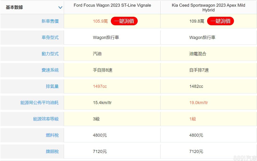 在8891汽車的「優惠」功能上,已有業代針對Focus Wagon提供購車優惠,涵蓋保險費折扣、低利貸款專案和多項購車贈禮,總價值達12.4萬元。Ceed Sportswagon目前則尚未有站內專屬優惠。