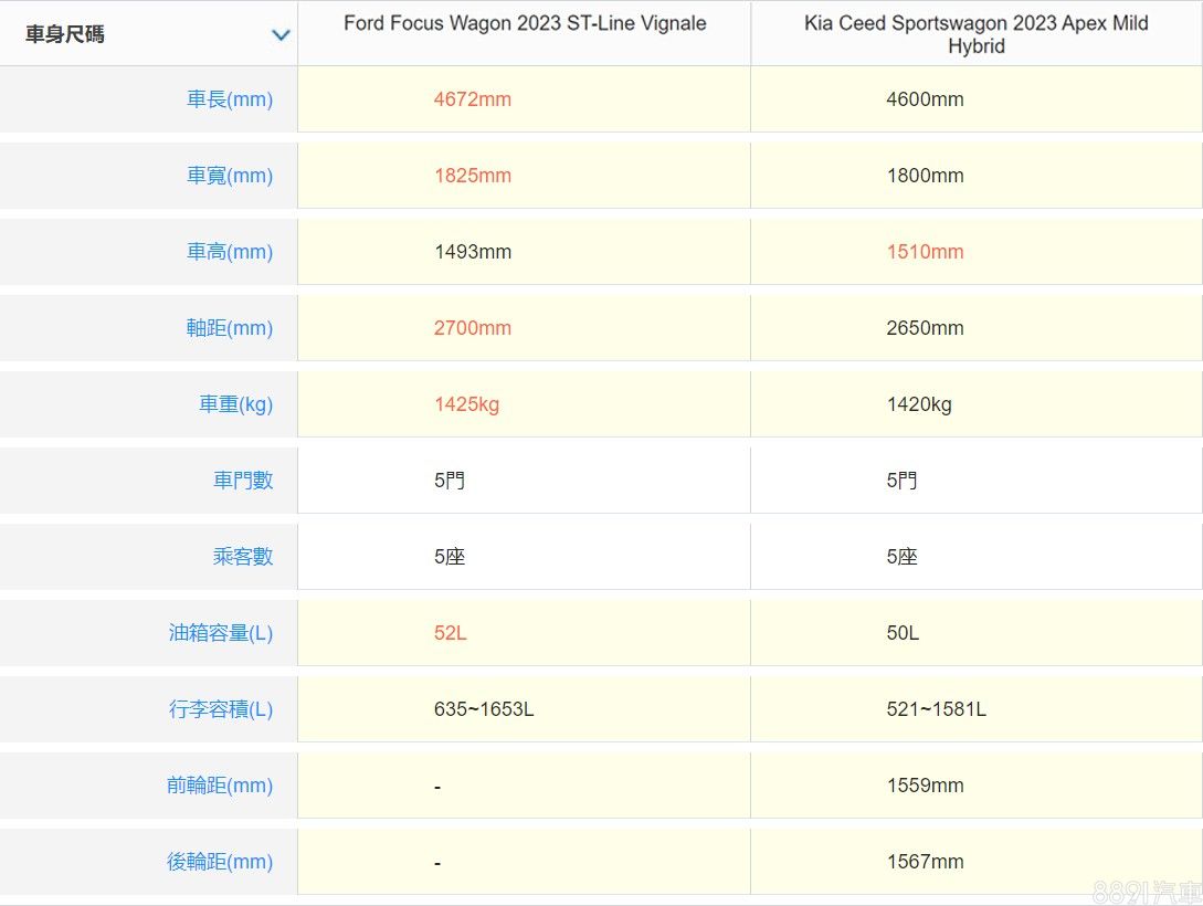 兩車同屬中型旅行車,尺碼和軸距也相當接近,但在尾廂容積部分,Focus Wagon不論標準狀態還是後排傾倒的數據都更好,更能滿足旅行車買家對載物機能的需求。