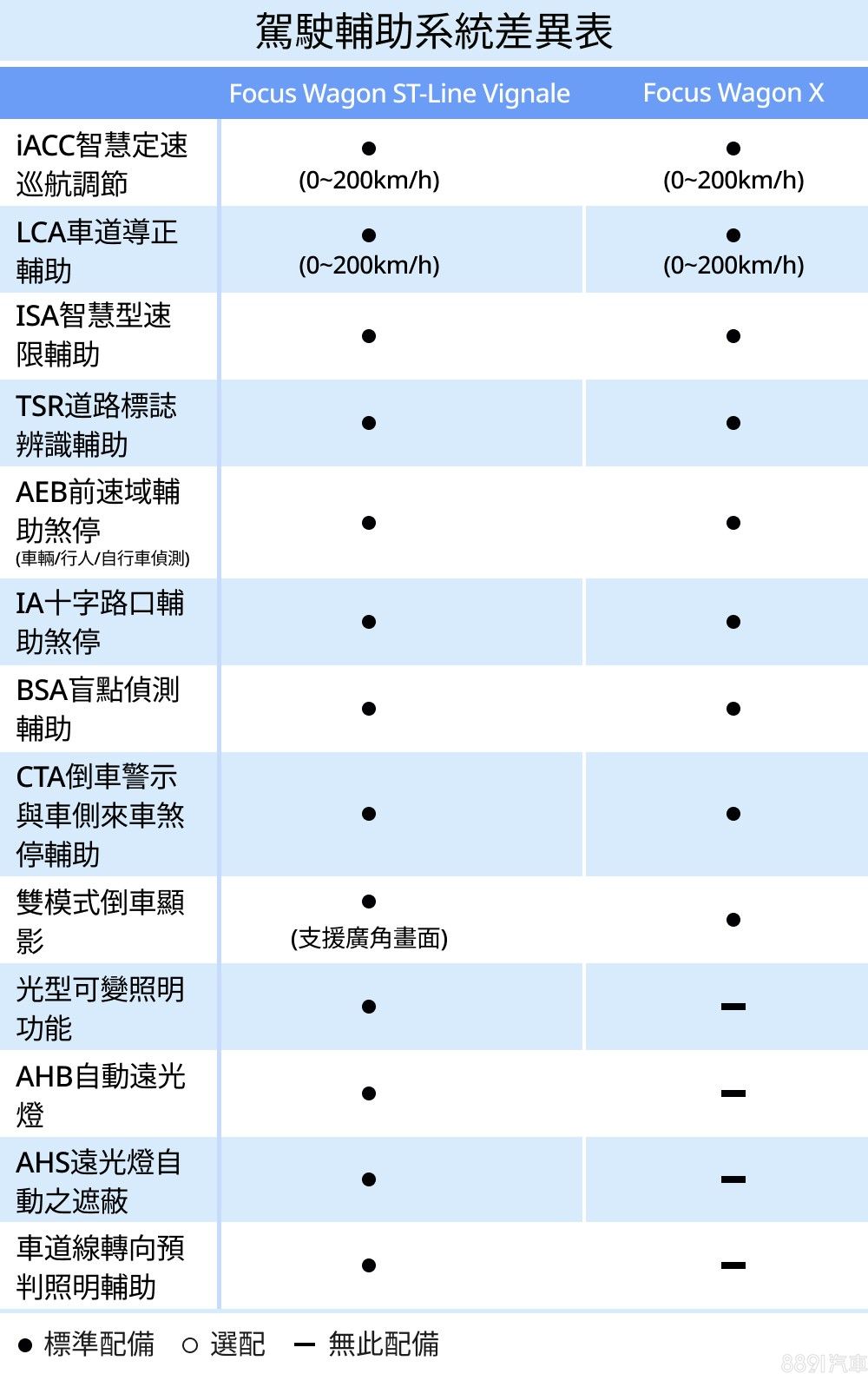 Wagon全車系均有完善的主動安全,即使入門版也具備Level 2駕駛輔助系統,差異比較大的是「Ford Matrix LED」僅限頂規車型獨享,具備動態光型可變、自動水平調整、遠光燈主動切換、智慧型遠光燈遮蔽、車道線轉向預判照明輔助等功能,其中最後者是透過攝影機偵測車道線,算是轉向輔助照明的「進階版」,能更精準地調整轉向照明範圍。