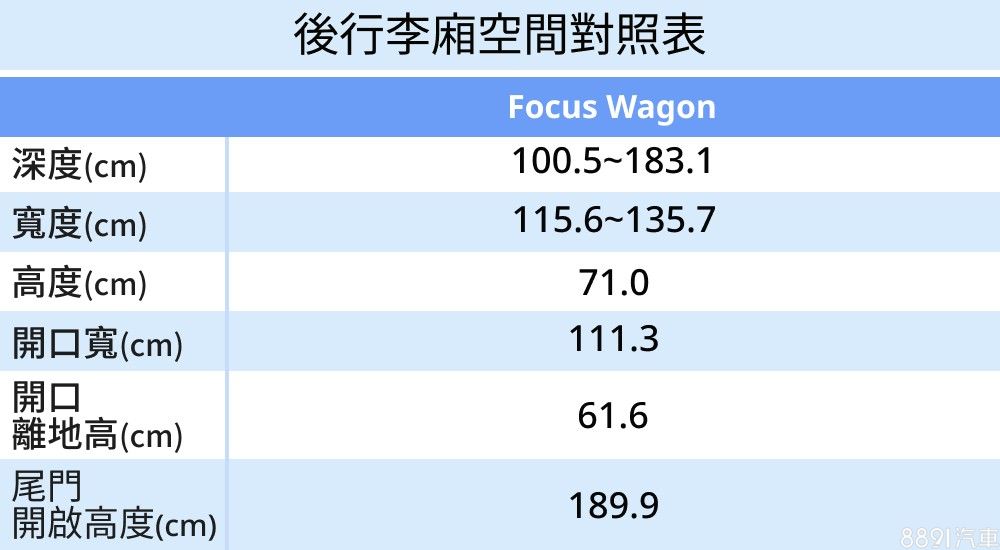 原廠公佈Focus Wagon標準容積為635L,比起掀背版的341L大上許多,實測數據也可證實,旅行車無論後座倒平與否,縱深表現都大上一截,且後座放倒後十分平整,擺放大件行李相當好利用;若與測試過的Golf Variant相比,Focus Wagon尾廂深度表現略小了3cm,但寬度多了約10~15cm。