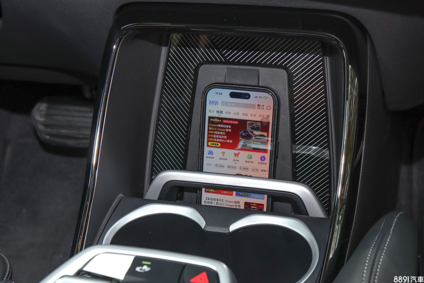 手機無線充電板為全車系標配,直立擺放更能省空間,不過只能支援一支手機充電,搭配無線Apple CarPlay、Android Auto功能,能實現無線用車環境,不過以目前技術來說,無線充電的效率仍無法太高,在無線充電時手機若同時使用導航App與音樂App,除了容易發熱,甚至還會出現耗電比充電速度快的情況,最後還是只能插實體充電線才充得到電。