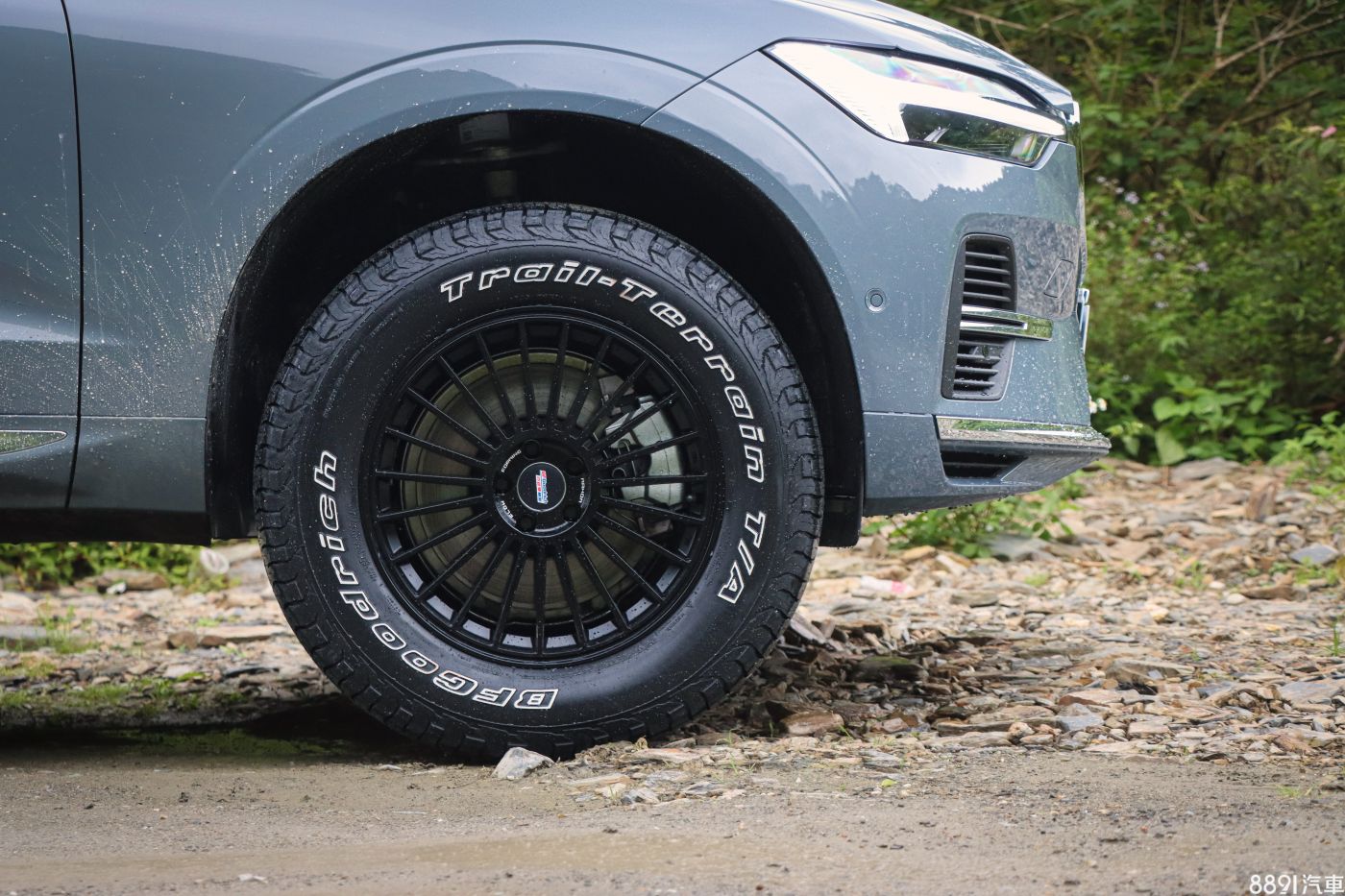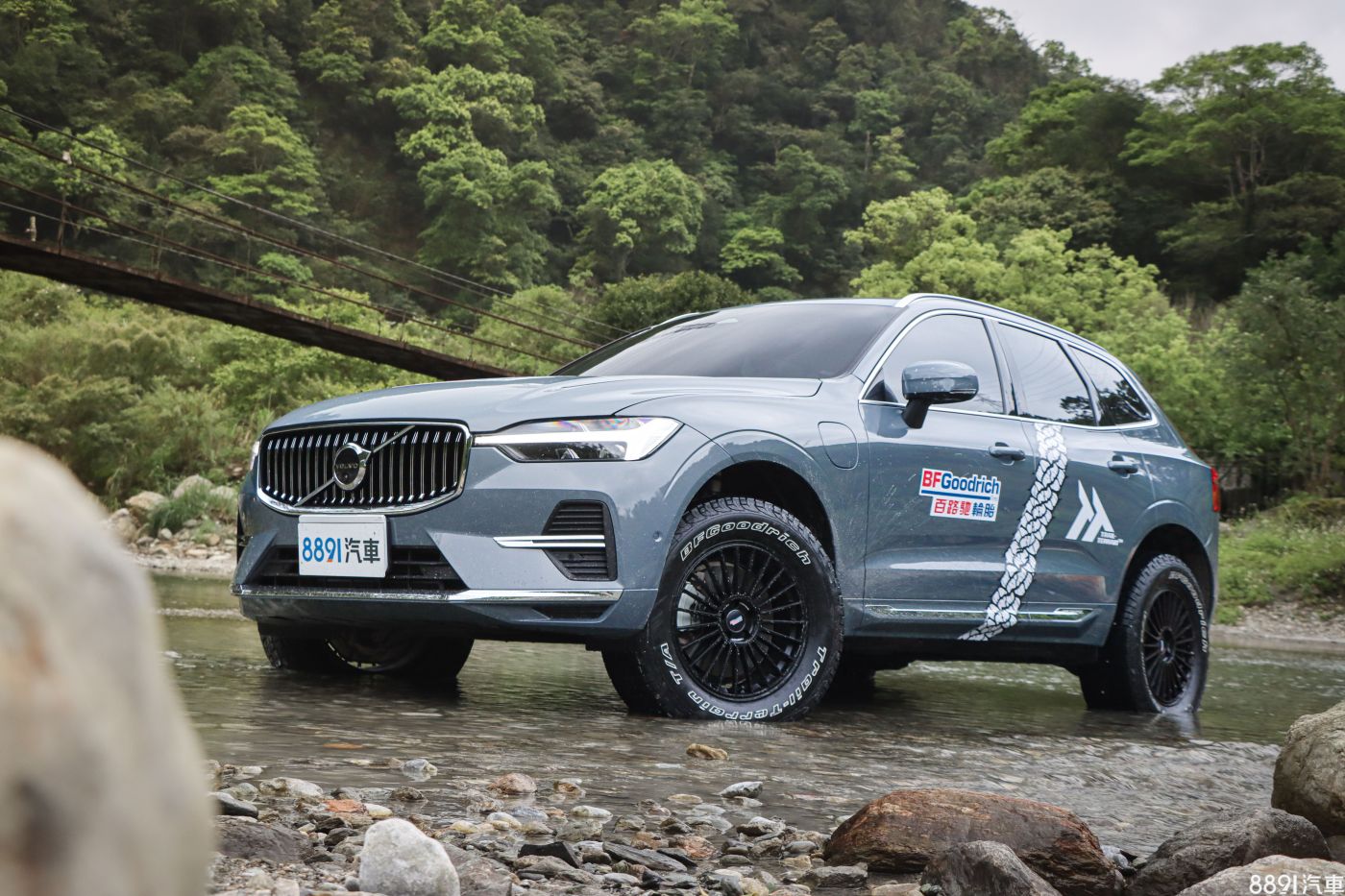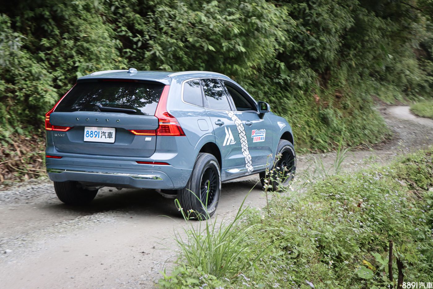 為了實際驗證Trail-Terrain T/A的性能,BFGoodrich找來XC60 T8做為試駕車輛,換裝規格為265/60R18,比原廠配胎235/55R19縮小一吋、胎面加寬3個等級。外觀部分Trail-Terrain T/A更採用「美式白邊」標明品牌型號,雖然只是細節點綴,但視覺感明顯加分許多,更別說換裝越野大腳讓斯文的XC60 T8也粗曠了起來。