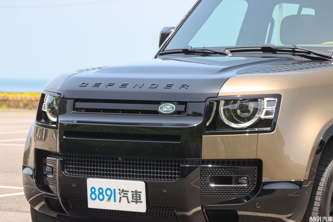 也因為增加了這34公分,加上本來就很粗獷、方正的車身輪廓,都讓他的視覺上的氣感受更加龐大。外觀設計則是與其他Defender車型相差不多,本次試駕車有選配價值40100元的黑化外觀套件,包括亮黑色水箱護罩飾條、黑色前/後下護板、亮黑色引擎蓋飾板含Defender字樣、亮黑色尾門含Defender字樣等,車側C柱位置也選配價值5900元的專屬飾板,整體視覺呈現相當有份量又不失質感。
