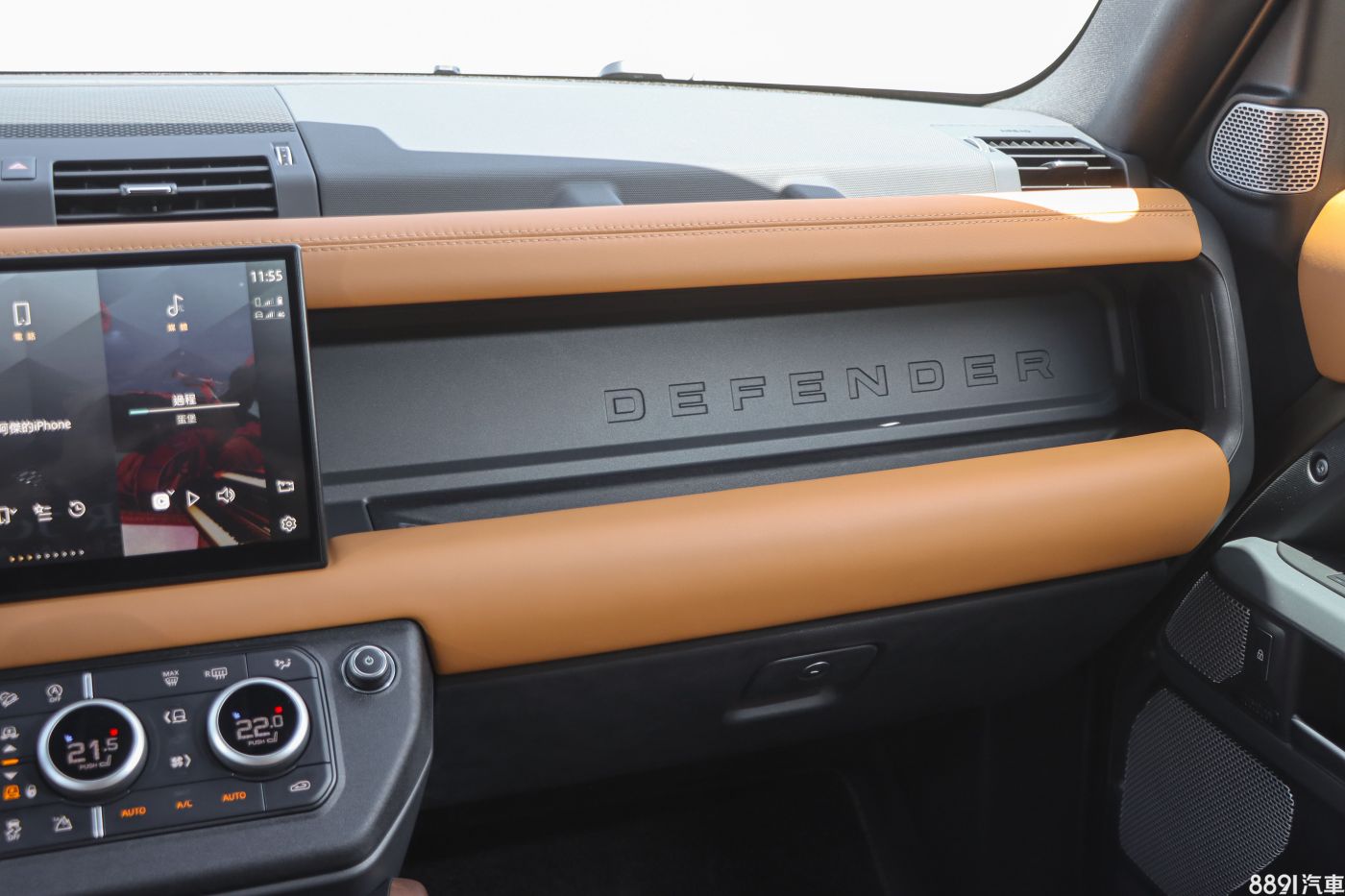 副駕駛座前方的儀表台有塊相當實用的置物空間設計,拿來放手機或小物品相當方便,中間還有大大的Defender字樣,增添獨特性和質感。