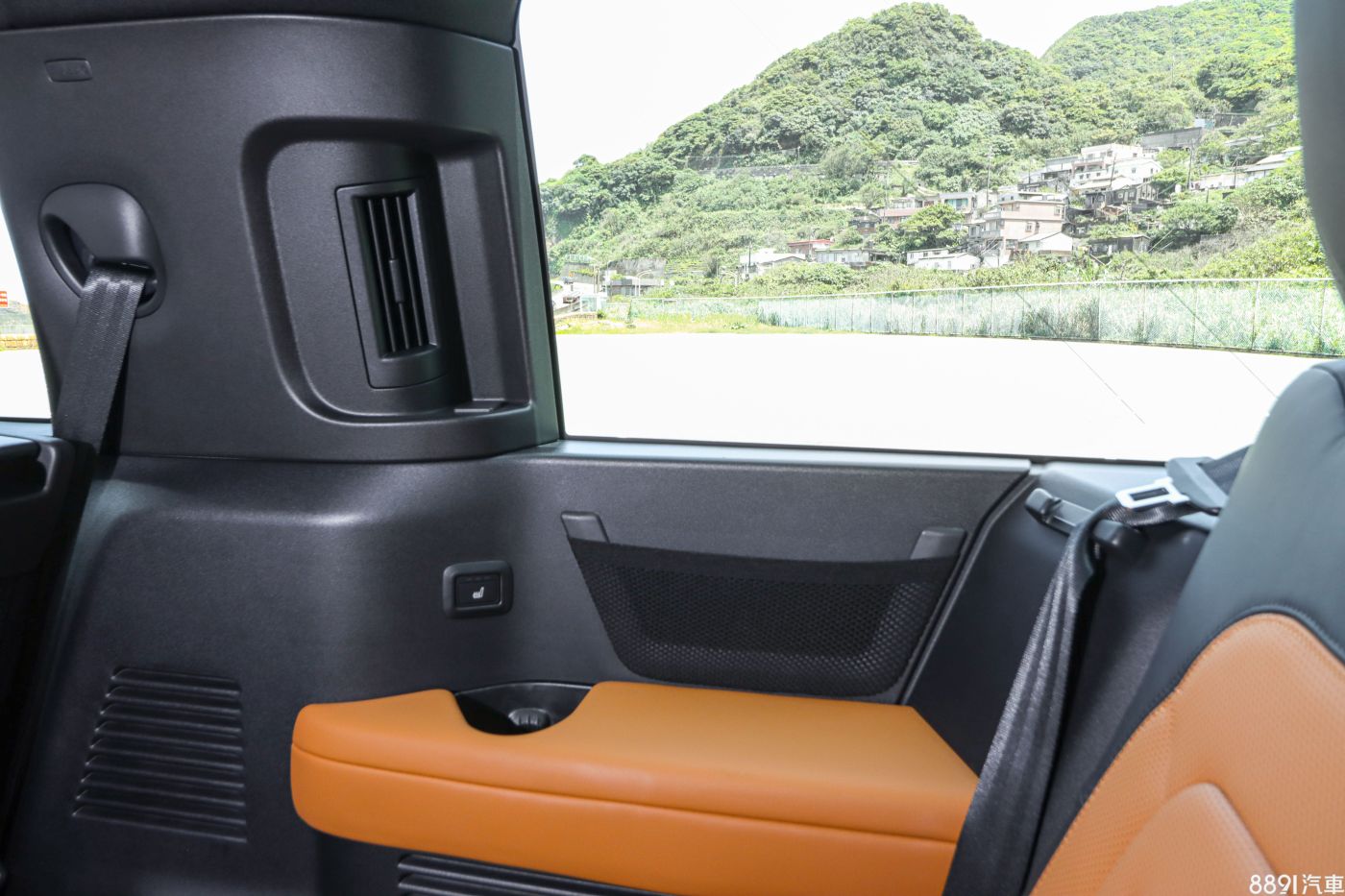 配備部分,側窗下方有置物網和杯架,座椅也配有加熱功能,C柱上則配有冷氣出風口。可惜的是和第二排一樣都沒有USB充電埠。