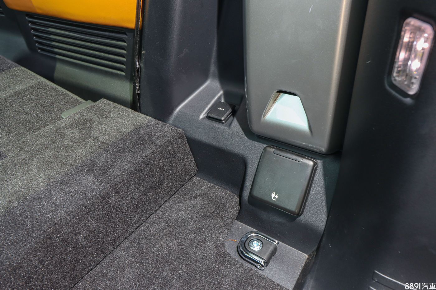 尾廂右方設有電器插座和12V電源,左手邊則有控制車身高低的按鈕,方便乘客放置物品。