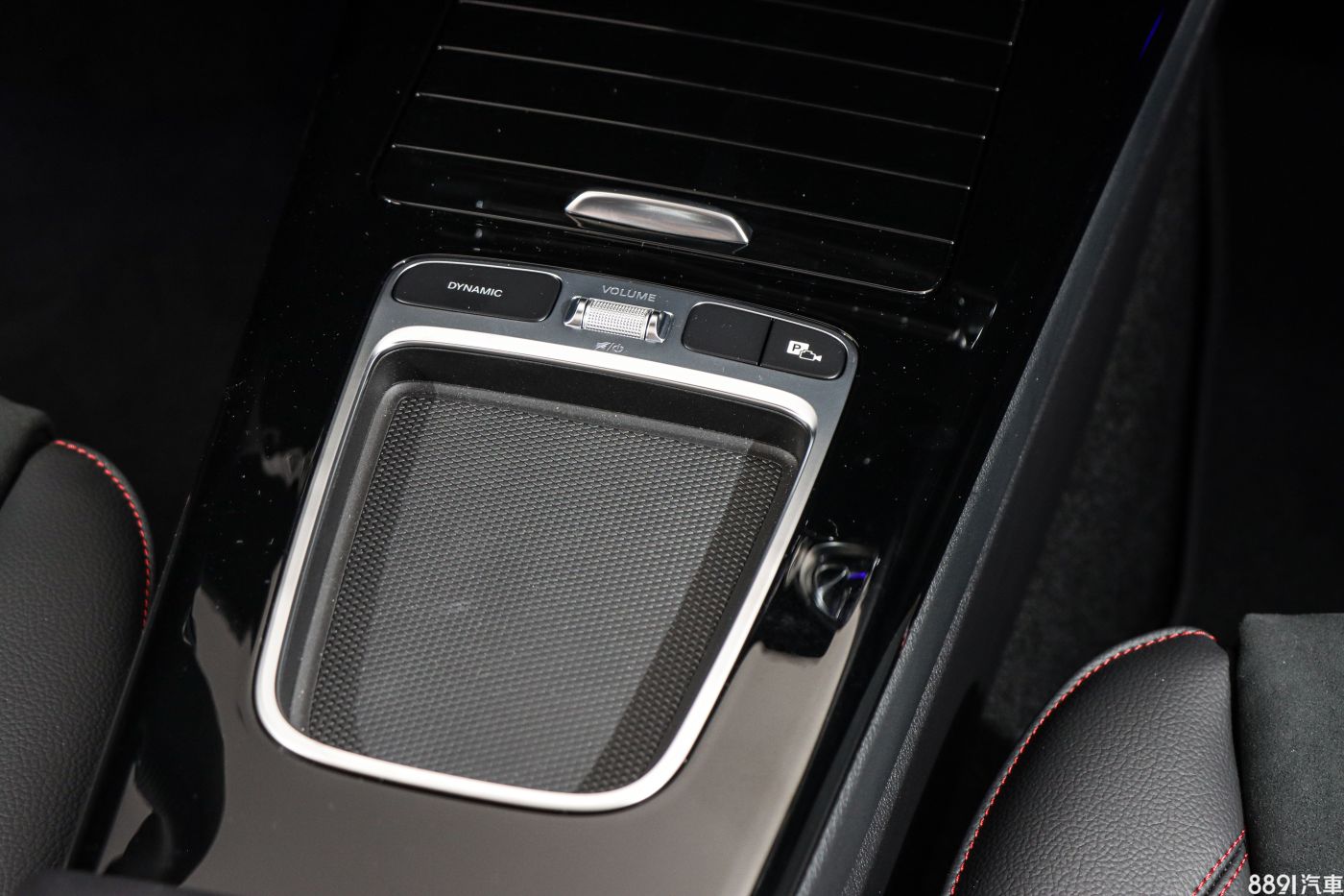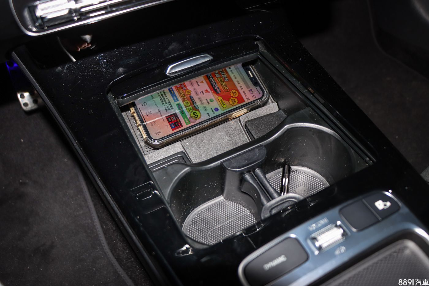 而前方置物空間也經過重新設計,還新增蓋板兼顧美觀,內部設有手機無線充電板,不過位置有些尷尬,當前方擺了瓶裝水時,要拿取時就會卡卡的。