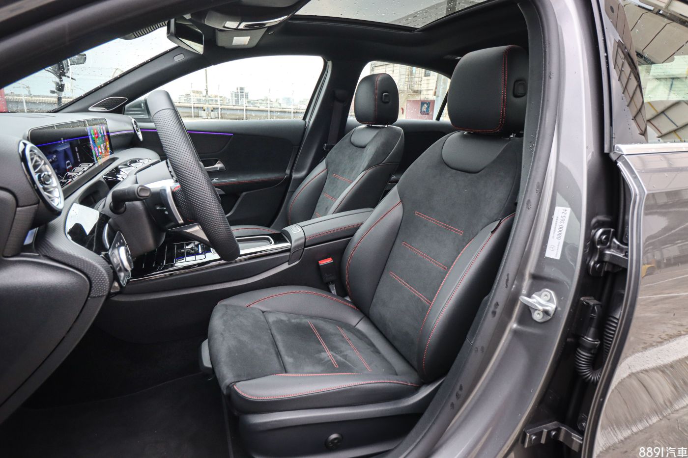 配置的跑車型座椅造型服貼身形,尤其兩側包覆性出色,透過電動腰靠可以進一步調整坐姿,還有3組記憶功能方便在「通勤」或「呸車」時做切換,座椅採用皮格混搭麂皮包覆,再加入紅色縫線點綴,除了好看、好摸之外,激烈操駕時也能固定臀部、不容易滑動。