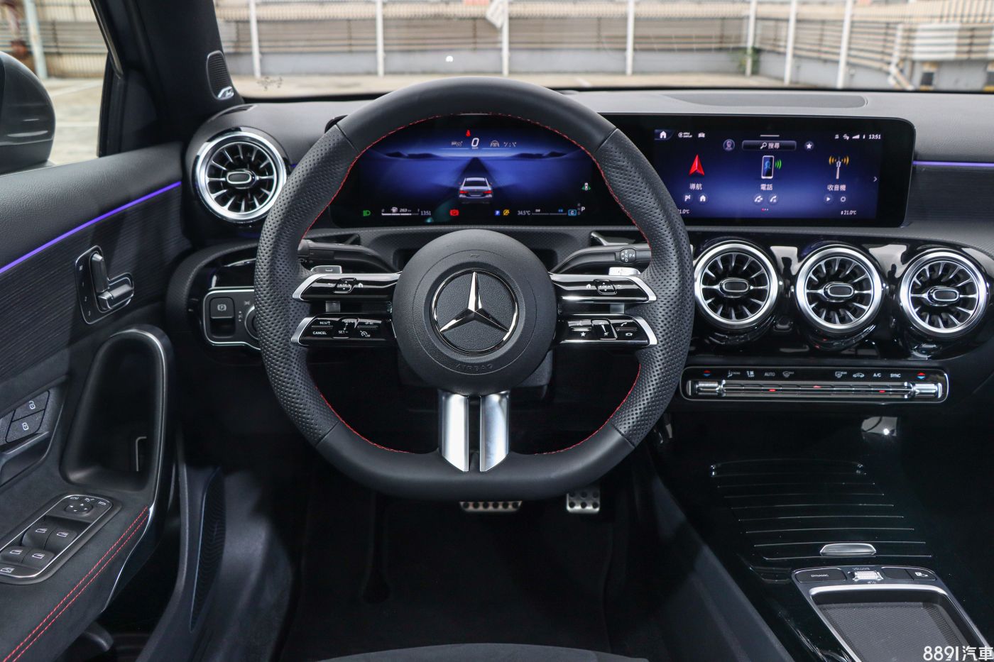 A-Class搭載新世代電容感應式方向盤,因為標配AMG Line的關係,統一為Nappa真皮平底跑車方向盤,類似「蜻蜓」般的設計相當好認,手握觸感也很舒服。左、右兩側按鍵分別可控制數位儀錶與中央螢幕,滑移選單反應迅速、按壓回饋感也紮實,稍微用幾次就能上手,即便「盲操作」也沒什麼大礙。