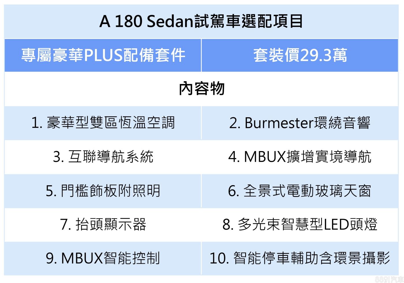 本次試駕車配有的「專屬豪華Plus配備套件」,價格29.3萬,算是台灣賓士「精裝車」的概念,雖說選完後你的A 180 Sedan已經突破210萬大關,但據了解,多數都是過去A-Class車主會選配的項目,以套裝價入手會更優惠,當然你也可依需求個別加選,只不過MBUX擴增實境導航及智能控制目前就僅供套裝選配。