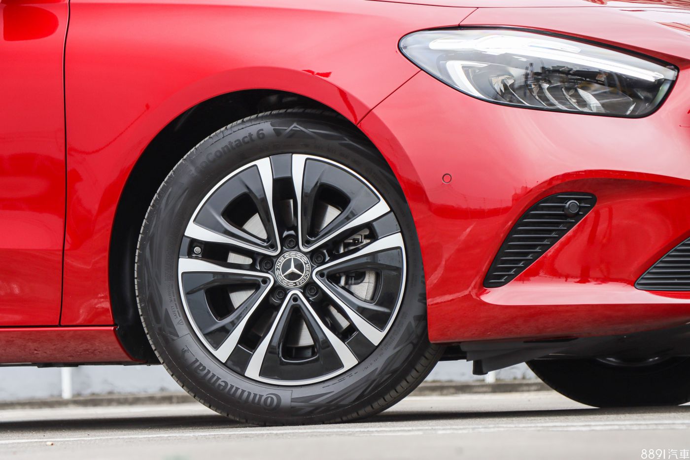 標配17吋五幅雙肋式鋁圈,搭配205/55R17 馬牌EcoContact 6,是專為豪華車款所設計的節能胎款,行路質感、寧靜度都可圈可點,相當符合B 180的產品調性。