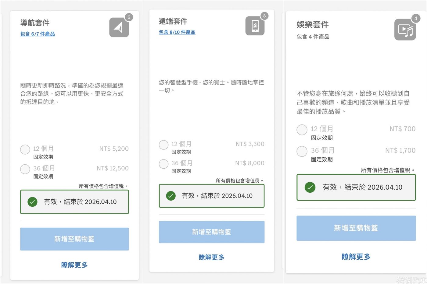 按照台灣賓士規劃,軟體訂閱服務在新車三年內均為免費使用,三年後則可按照車主自身需求訂閱使用,每年費用按照功能不同略有差異,舉例來說導航更新與即時路況服務每年要價5200元,車輛遠端監控每年則要價3300元。