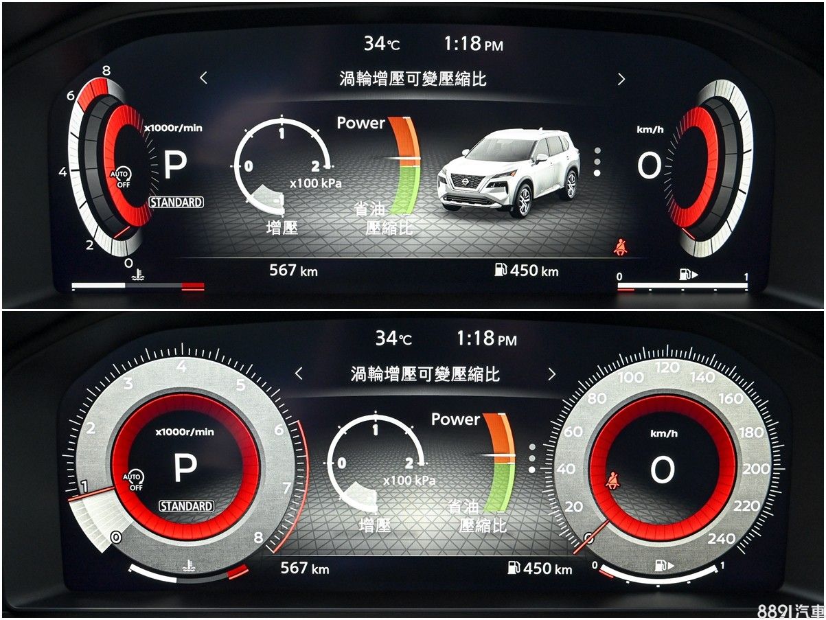 中階版本開始搭載12.3吋數位儀錶,擁有兩種顯示風格,而且畫質好,頁面切換很流暢,中間除查看車輛基本資訊,也能看到可變壓縮比引擎的運作狀態,雖然正常駕駛不會緊盯著看,但可以知道引擎如何運作也是蠻有趣的。