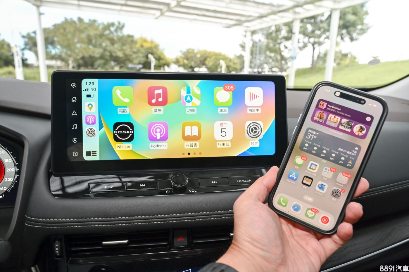 12.3吋觸控式多媒體系統操作起來反應即時、邏輯易就手,整合導航、無線Apple CarPlay/有線Android Auto、娛樂、360度環景等功能。螢幕下方保留了音量、選曲、環景攝影實體按鈕,用起來蠻順手的。