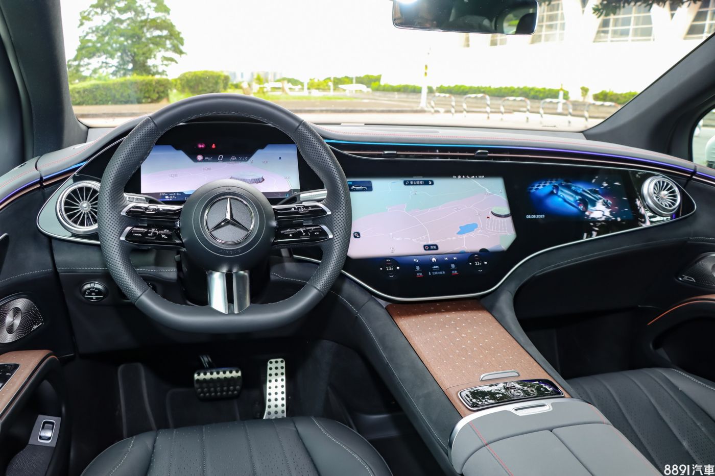EQS SUV內裝最大亮點在標配56吋Hyperscreen超大數位座艙,儀表板、中央觸控螢幕、副駕螢幕透過玻璃面板連成一氣,科技感沒話說,極具視覺震撼力。而且旗艦定位的EQS SUV本身標配項目就很豪華,包括棕色玉蘭木飾板含鋁質三芒星標、黑色Nappa真皮座椅都是標配,想要選配其他顏色皮質都無需加價,讓車主能依照個人喜好打造內裝氛圍。