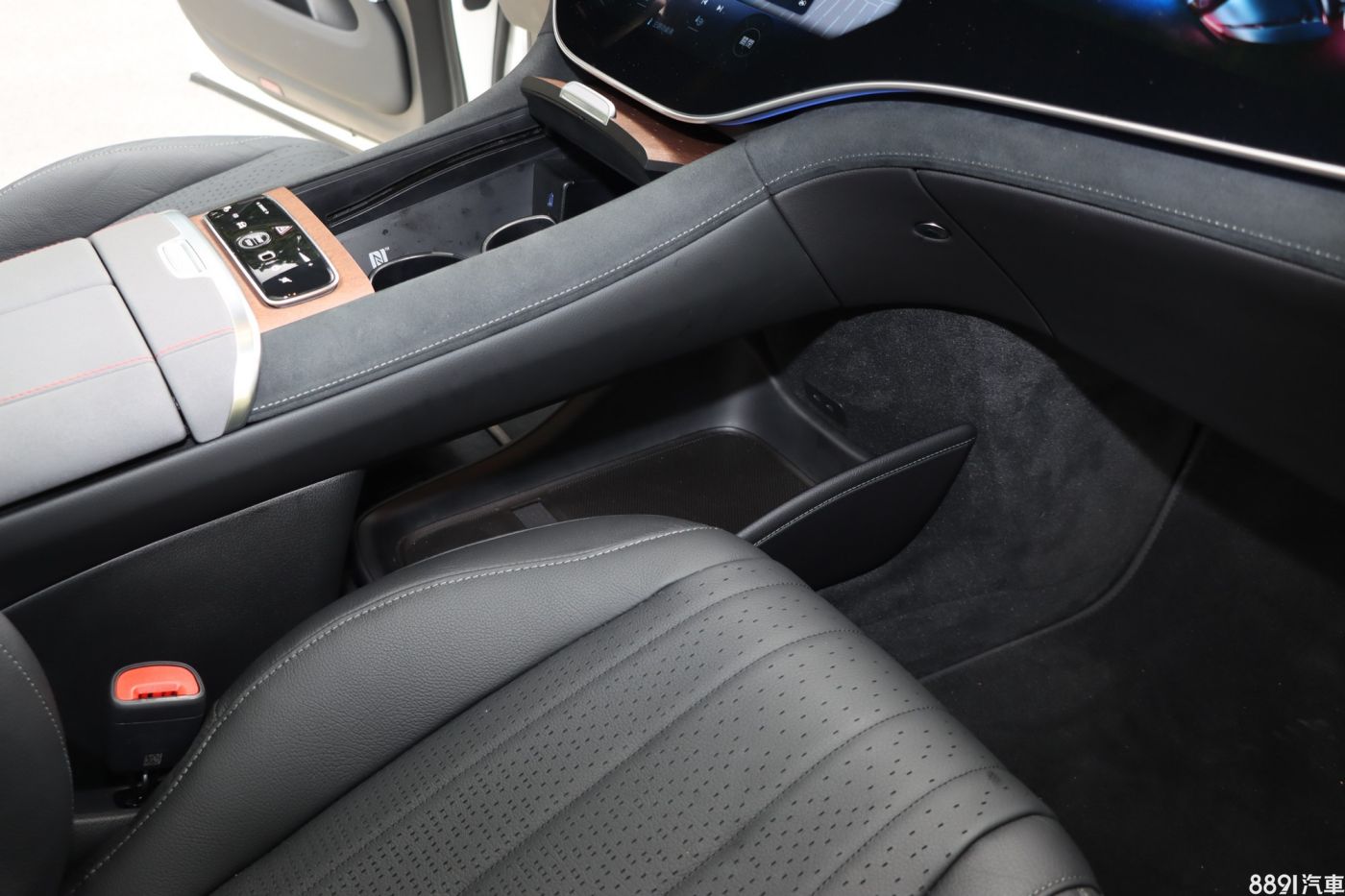 EQS SUV在空間設計上很有一套,前座除了基本的置杯架、中央扶手,下方還設有很深的開放式置物空間,放置隨身包包真的很方便,而且前座一共提供6組USB Type-C充電孔,結合無線充電板一共可以為7隻手機充電!
