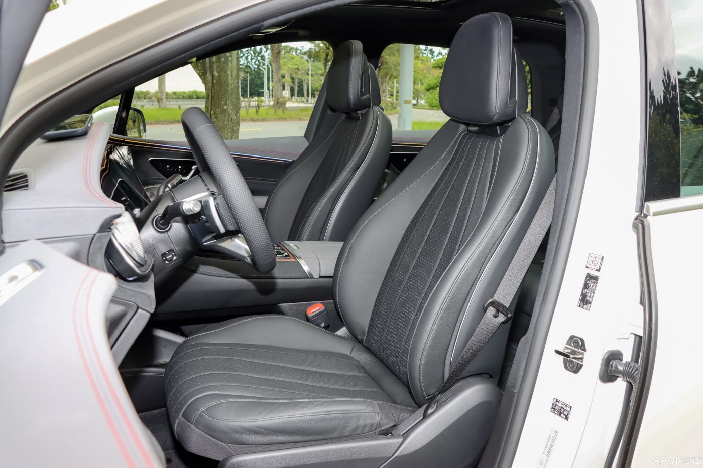 這輛試駕車選配跑車化座椅,但僅有兩邊側翼加強包覆,實際乘坐感受仍然非常舒適,大腿、腰部支撐無可挑剔,此外由於EQS SUV儀錶板傾斜角度較大、兩旁窗戶腰線也高,因此坐姿調整建議坐高一點,對於車輛掌握度更好、視覺死角也更少。