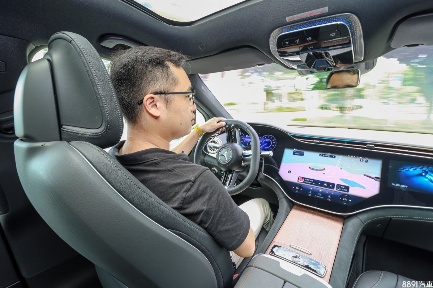 EQS標配後軸轉向,做動範圍比照S-Class最大角度來到10度,開在路上並不會覺得這是台特別大的車,尤其迴轉半徑只有5.5m,實測只要一個半的車道寬度就能完成迴轉。
