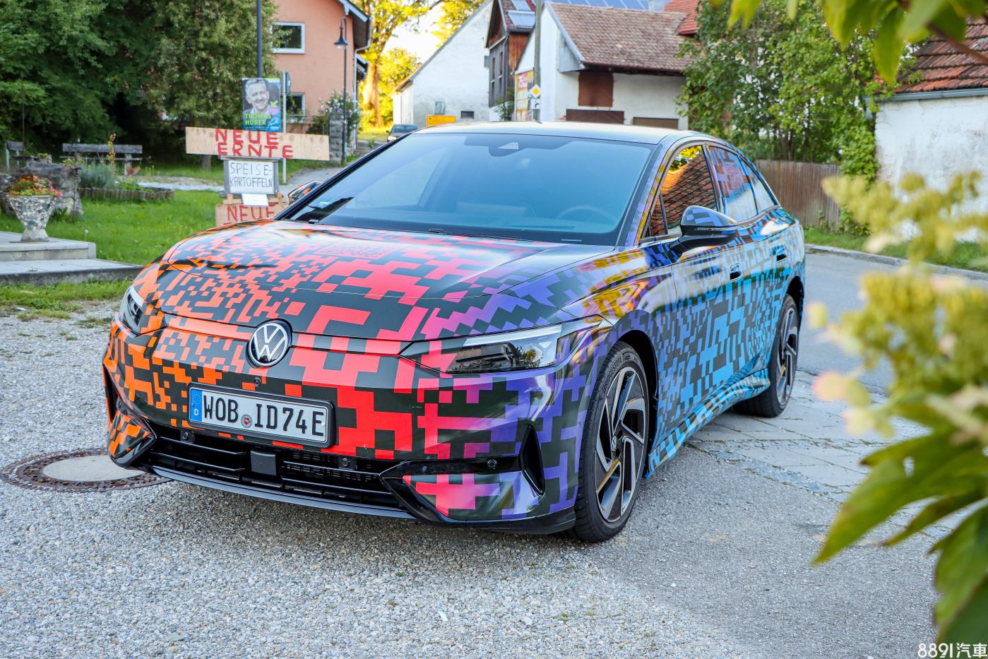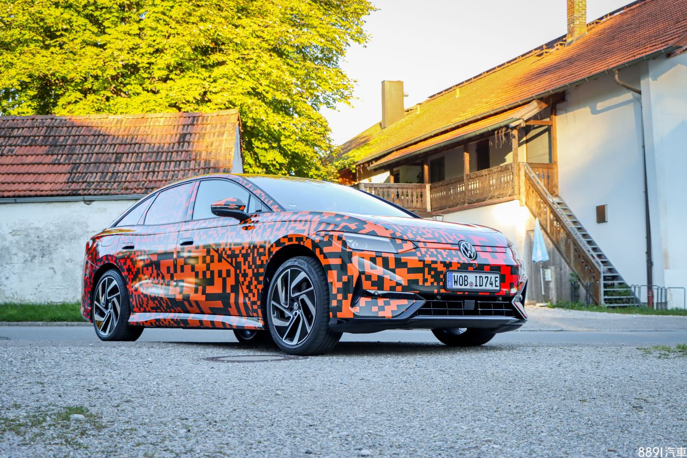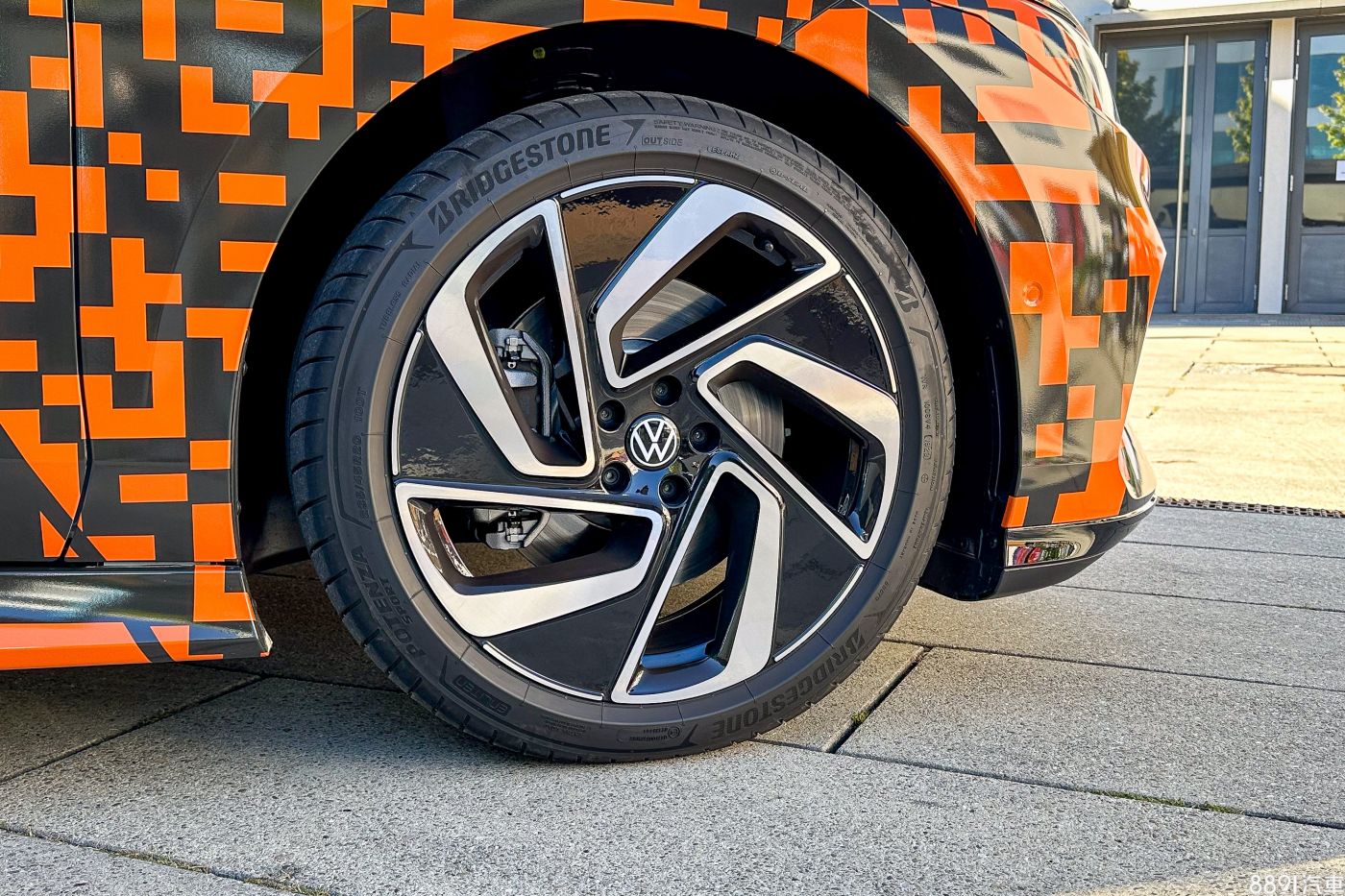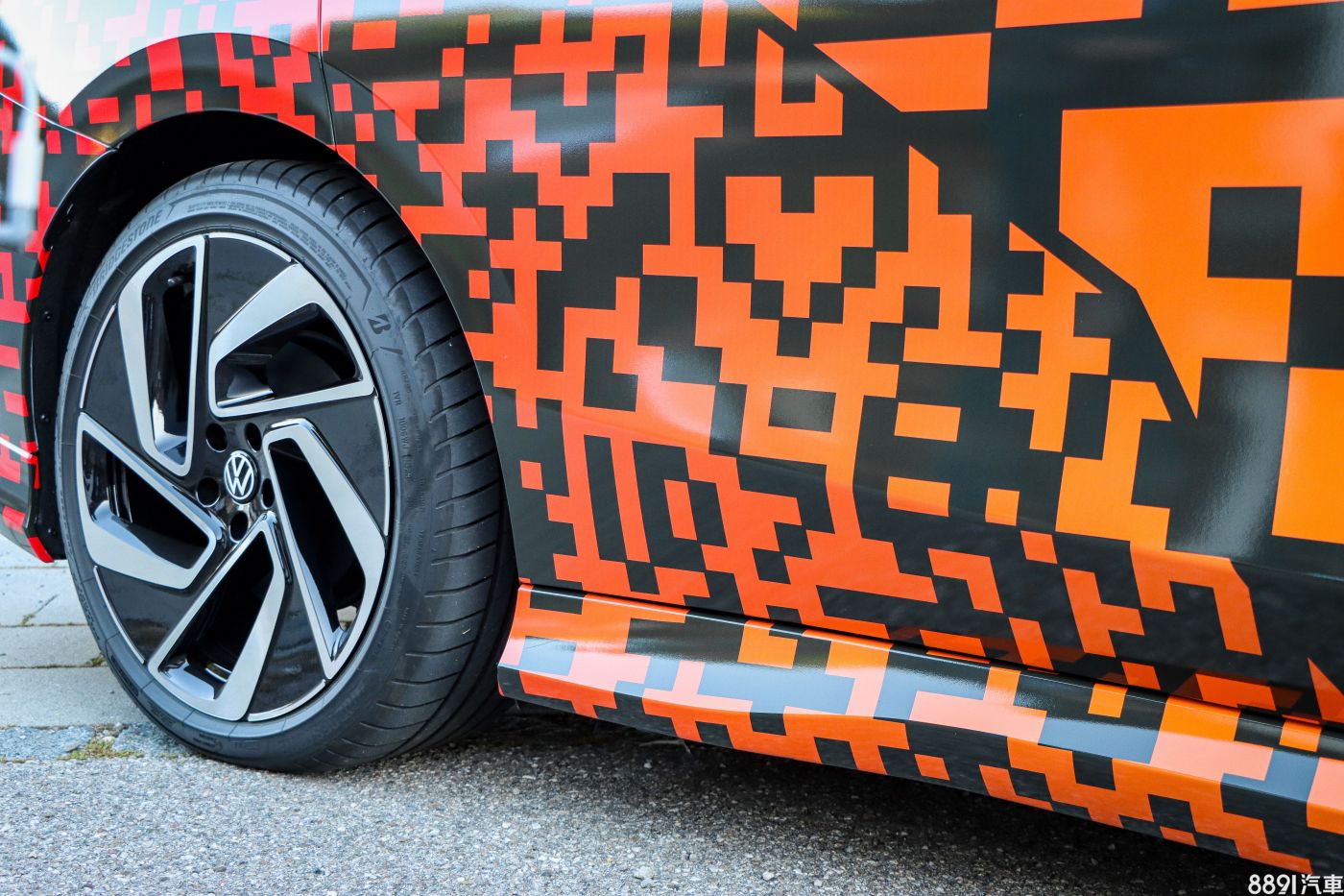 回到貼滿偽裝的試駕車,仔細看會發現這偽裝不是隨便貼貼,還有隱藏彩蛋在裡頭,原廠在右後輪前方偷偷把「ID.7」放上去,看出來了嗎?