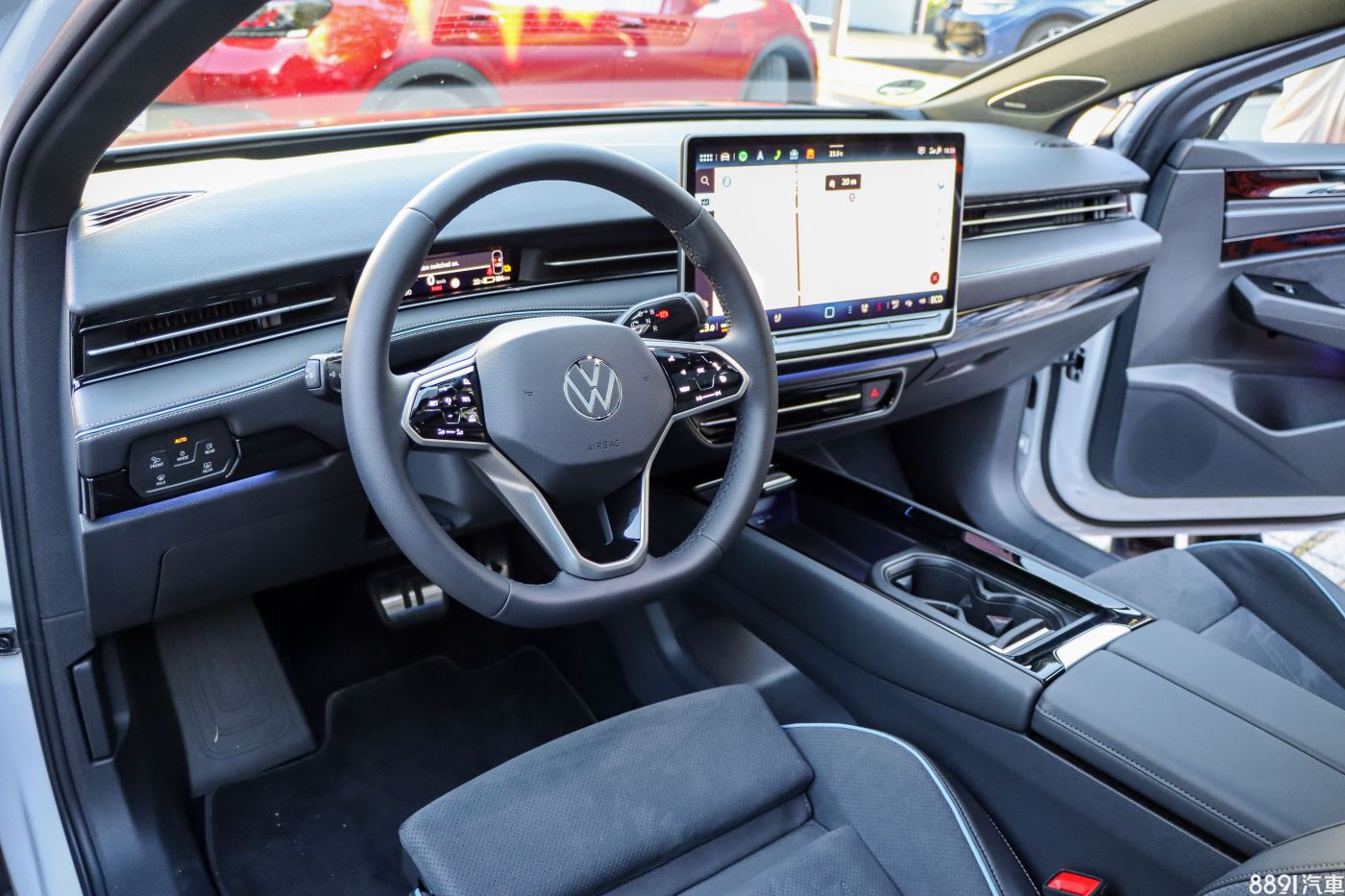 一如其他ID.家族車款,ID.7座艙設計也十分簡潔,主要以水平線條鋪陳,並大量減少實體按鍵,包含空調介面、駕駛模式、多媒體影音等功能,均整合在中央15吋觸控螢幕之中。