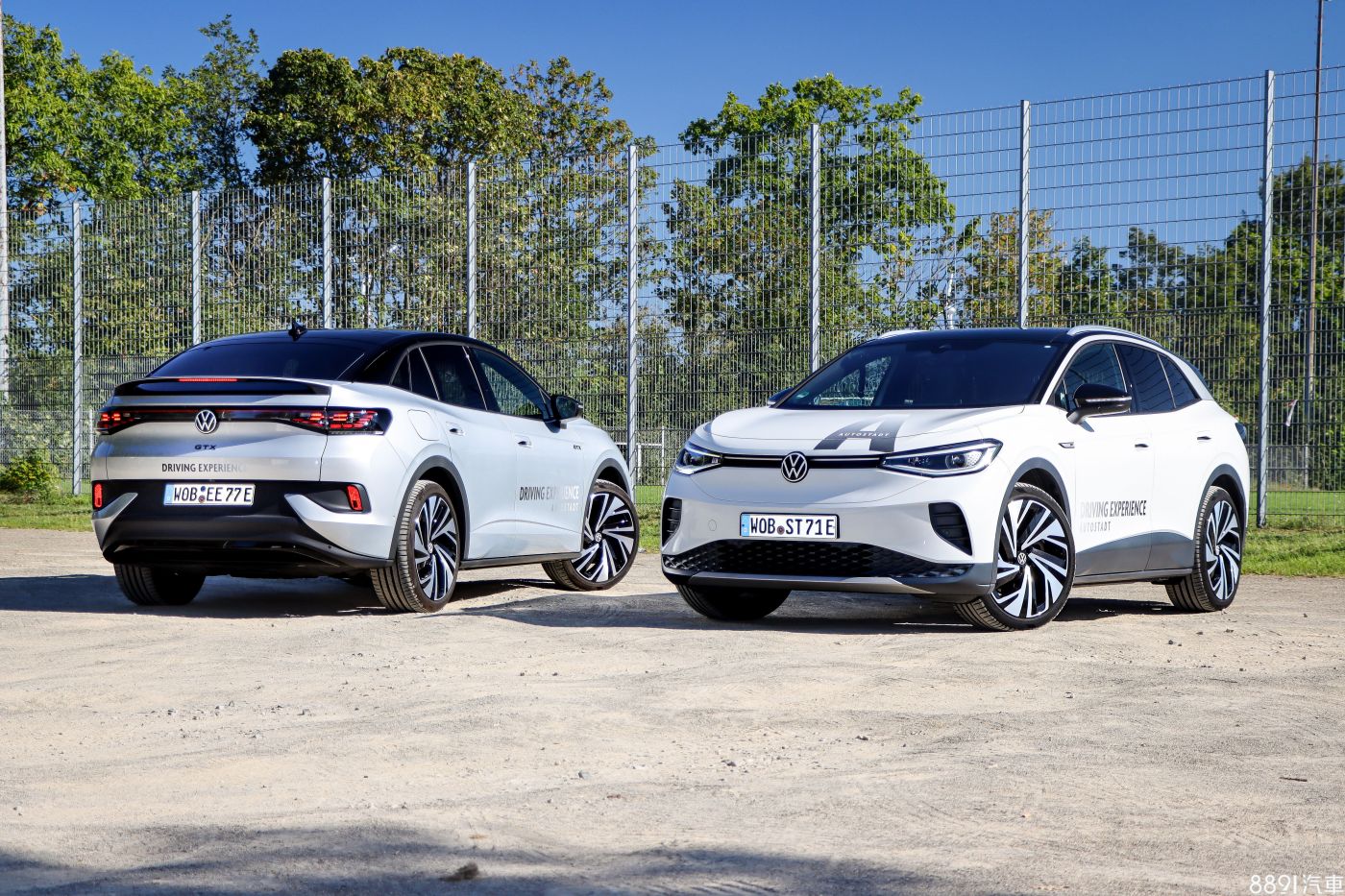 我分配到的試駕車有一般的ID.4 Pro(白)以及運動化版本ID.4 GTX(紅),兩車放在一起,主要是GTX保桿下方的格柵換成亮黑材質,兩側也多出三顆霧燈,不過老實說車頭差異很不明顯,GTX的「尊榮感」並不高。