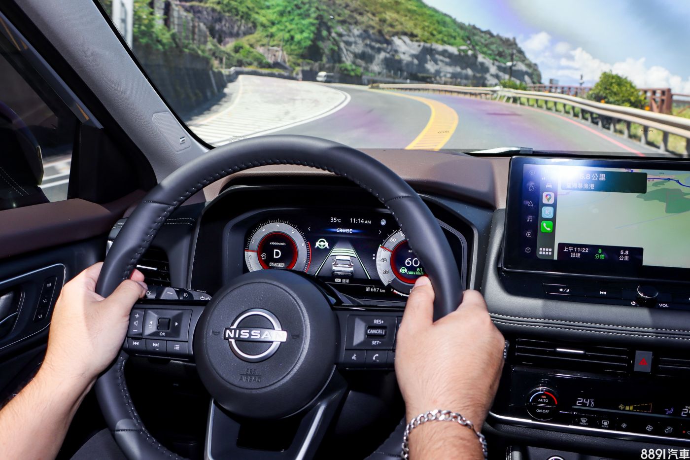 X-TRAIL輕油電全車系都標配符合Level 2等級的「ProPILOT智行安全系統」,其中ACC跟車、車道維持都是全速域,在路況較單純、轉彎幅度也不大的台2線很適合使用,開起來更輕鬆便利,且這套系統還有「AI智能輔助」,在車道維持開啟的狀態下,若相鄰車道有大車,可微調本身在車道內的位置,與大車拉開多一些距離,搭載的安全輔助科技真的有感更上層樓了。