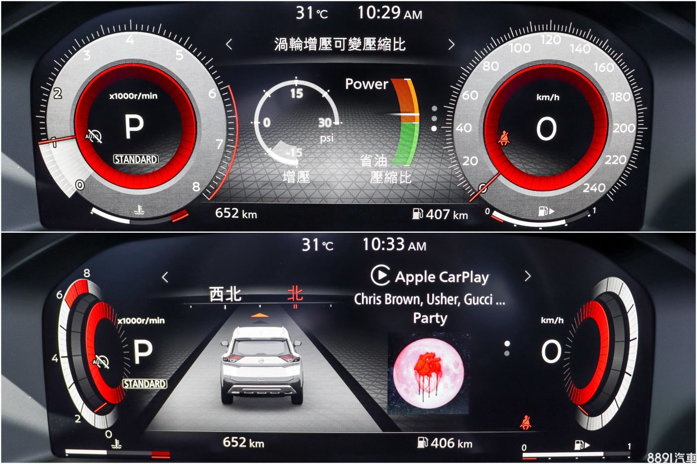 12.3吋數位儀錶擁有兩種顯示風格,畫質好、頁面切換很流暢,除了可查看許多車輛資訊,也能看到可變壓縮比引擎的運作狀態,開在路上看著他不斷在切換也是滿有趣的。