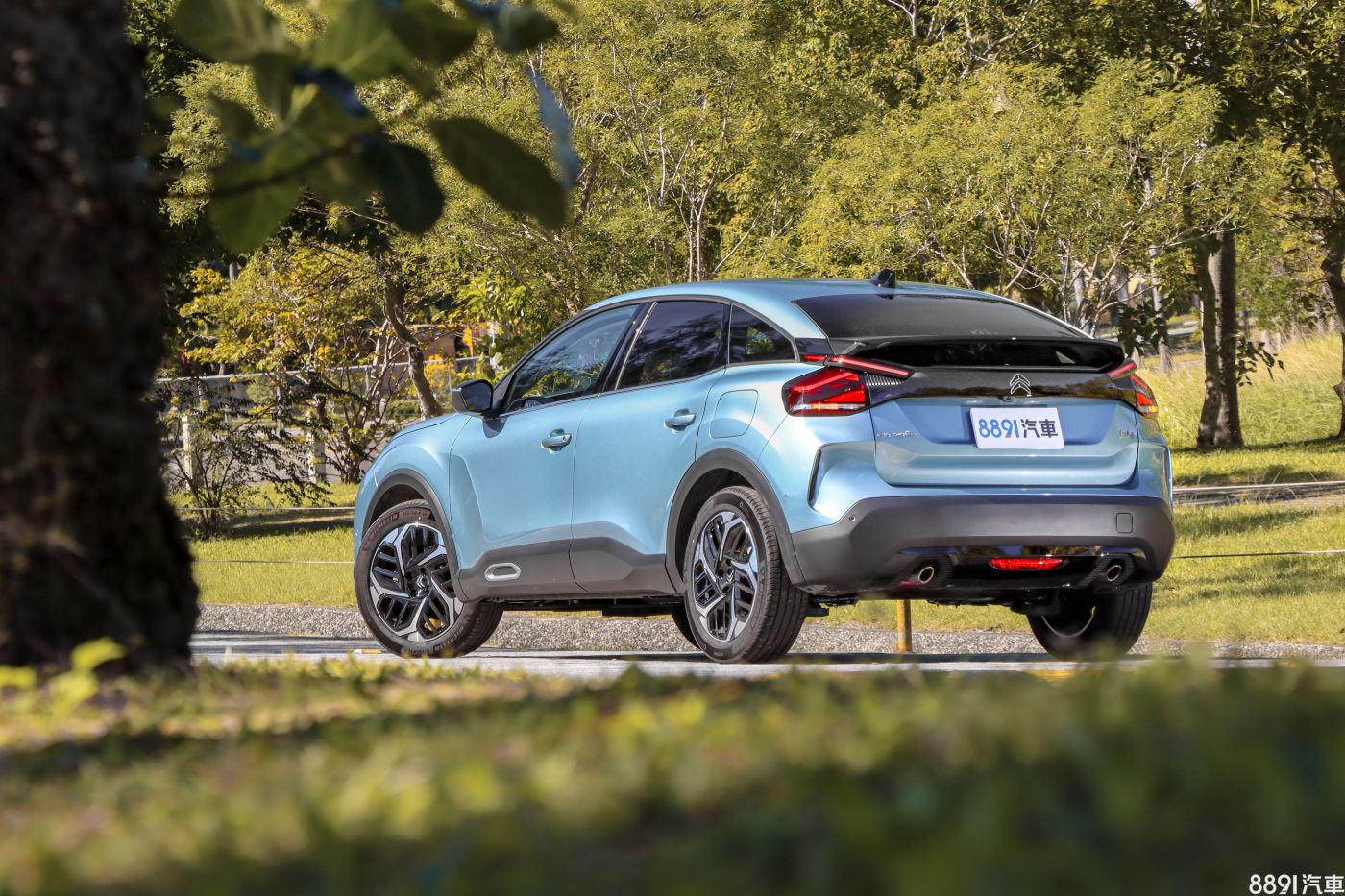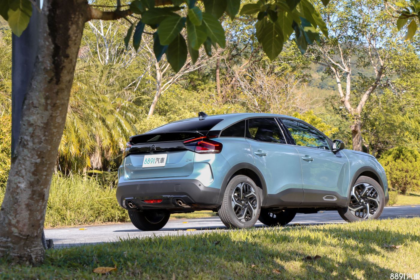 立體的輪拱搭配流線的斜背造型,讓身為高底跨界的C4看起來仍有低重心的氛圍,狹長的側窗造型與懸浮式車頂,也讓車身在視覺上修飾得較為修長。雙出尾管為燃油款特徵,不過若能搭配管徑較大的尾飾管應該會更有運動張力。