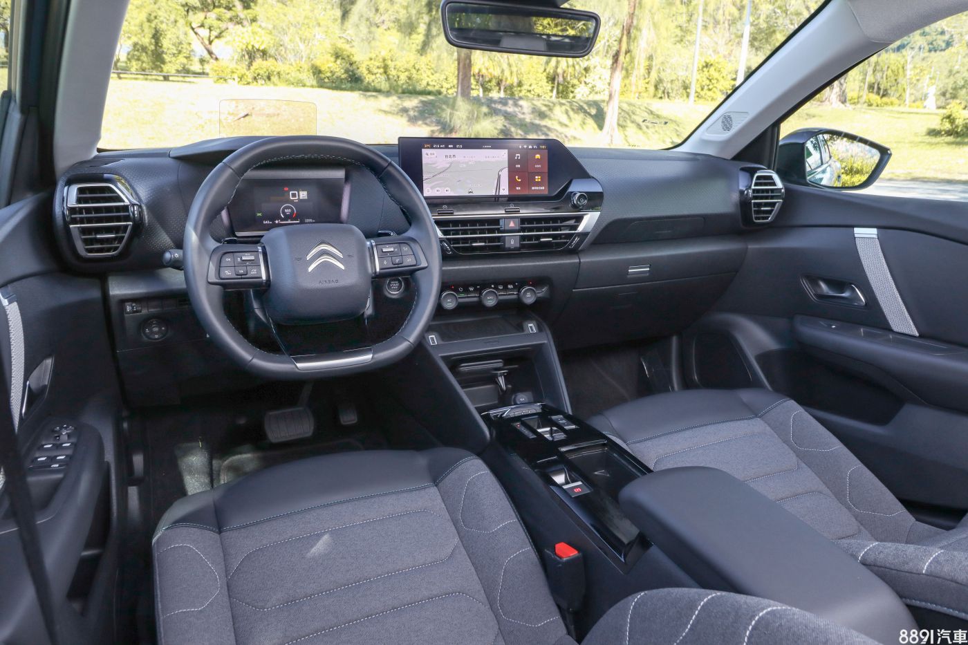 相較於有記憶點的外型,C4座艙格局相對沒那麼前衛,甚至帶點C5 Aircross的家族風格,車室透過水平線條為主的儀錶台、前端下潛的中船造型與平整化排檔座等設計,營造開闊的車室視覺。