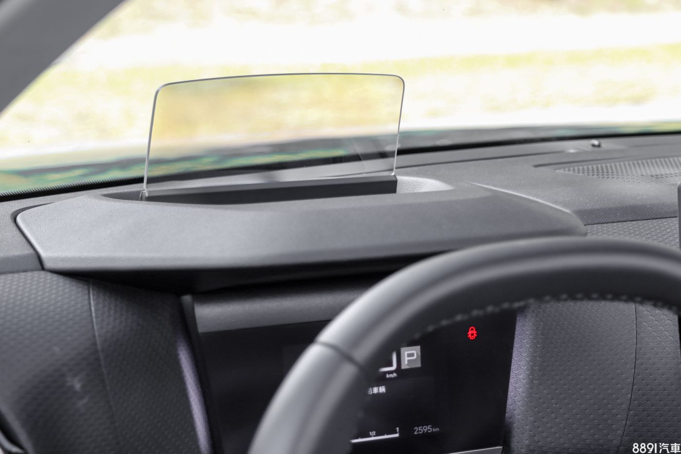 HUD抬頭顯示器為Shine等級專屬配備,採反射式設計,反射片並有深色鍍膜來減少眩光以提升顯示效果,不過顯示畫面尺寸偏小、範圍不大,稍微影響資訊易讀性,實際使用上還是覺得讀取數位儀錶較為直覺些。