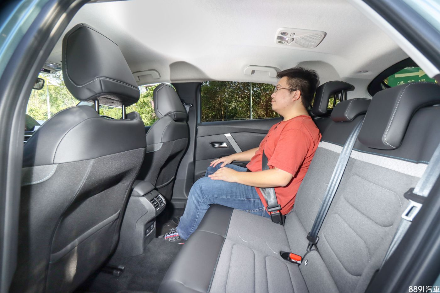 C4身為小型斜背跨界,原本我對後座空間不抱期待,但實際表現卻令我滿意,不僅縱向空間足,頭頂也不覺壓迫,座椅坐感同樣舒適,椅背看似平直,但腰部泡棉仍有加厚增進支撐性於服貼感,唯中央座椅墊較短,大腿前端支撐略有不足,加上果嶺隆起幅度不小,對舒適性稍有影響。