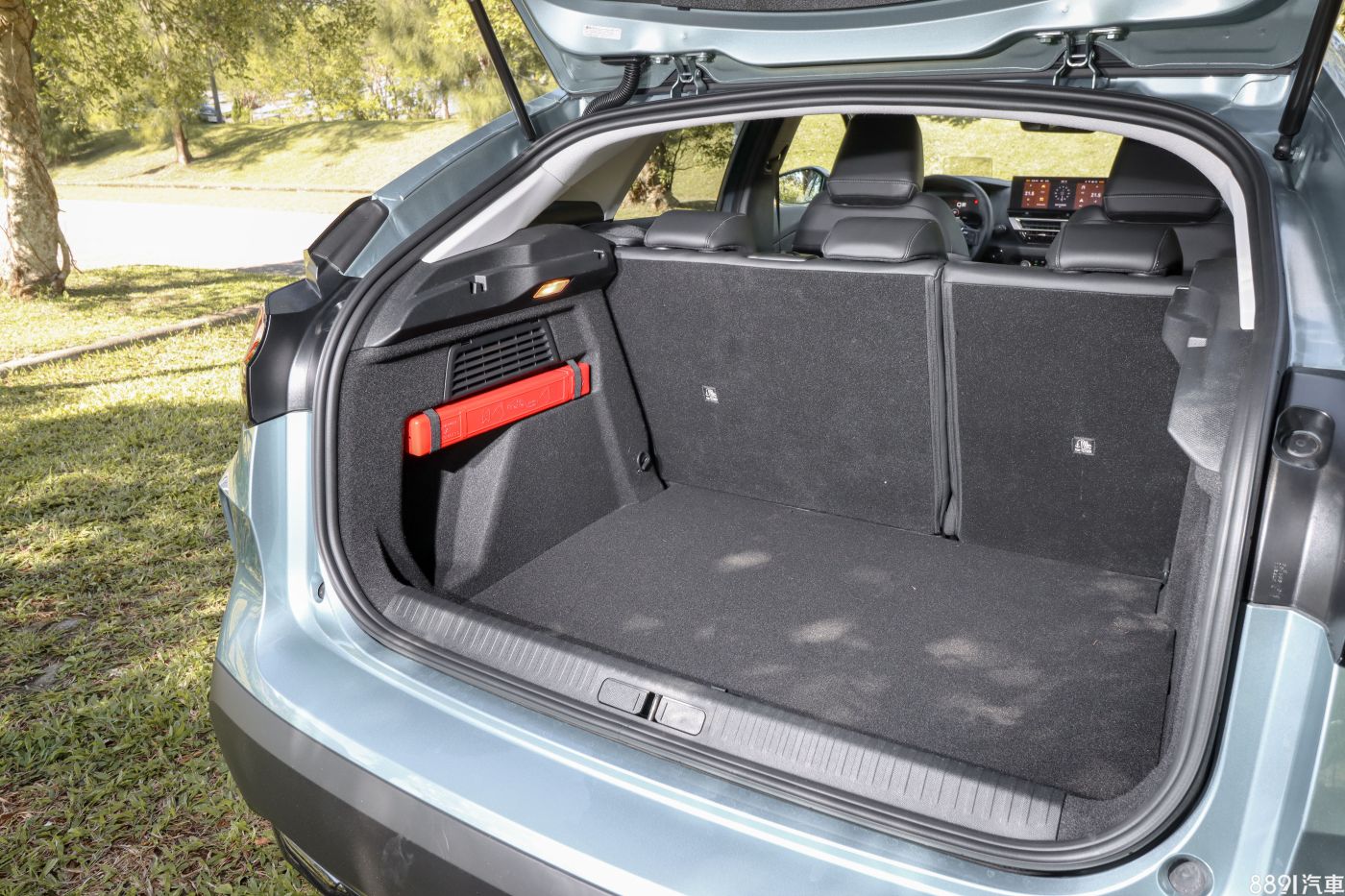 除了視野受影響外,流線的尾背也犧牲了尾廂上半部的空間,但下半部廂室格局方正,有利於空間運用,官方表示C4在標準五座配置容積表現為380L,搭配可6/4分離傾倒的後排,載物空間最大可擴充至1250L。