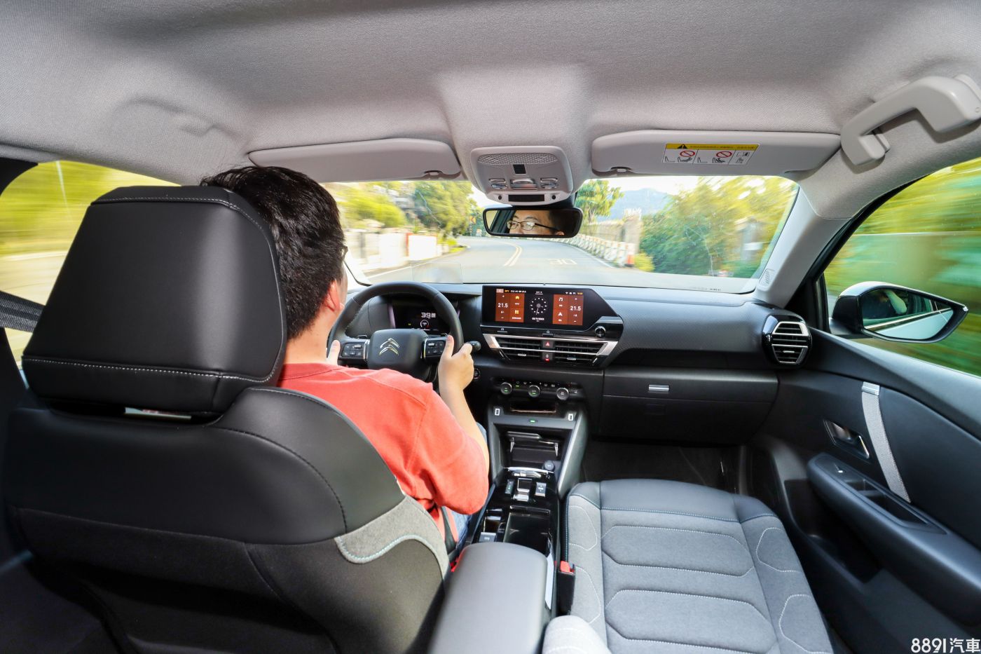 雖說後座乘坐空間並未受斜背設計影響,但卻明顯壓縮了後擋截面,搭配寬大的D柱和橫貫後擋的尾翼,也影響了後方視線,若後座還有乘坐乘客,乘客頭部亦將阻礙駕駛視野,所幸C4身形不大,空間感不難掌握,全車系標配的倒車顯影也能提供後方視野輔助。