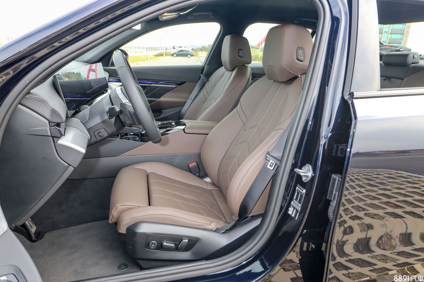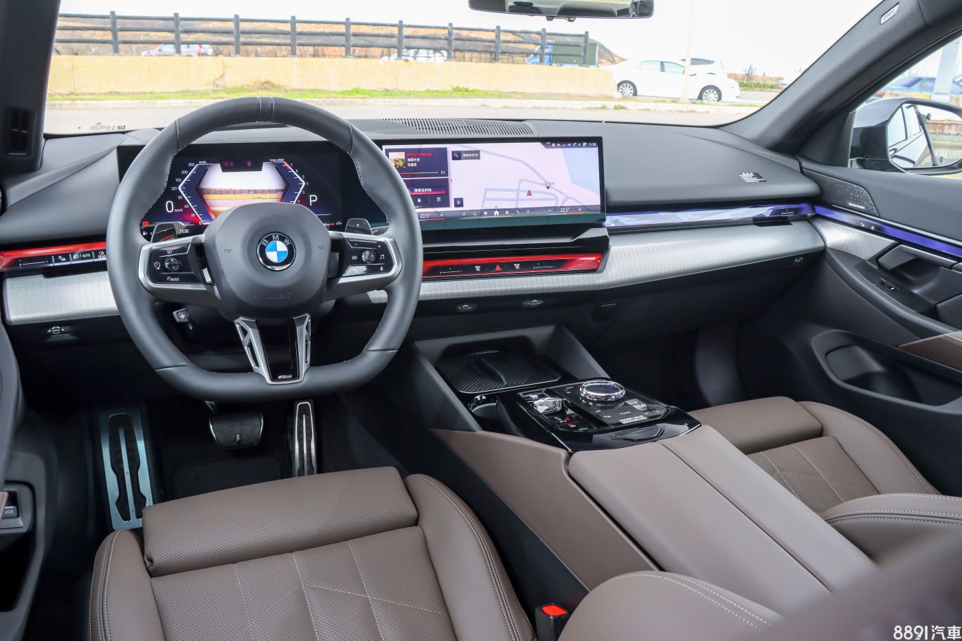 車內格局與i5如出一轍,保留駕駛導向設計,風格則明顯受到7系列的影響,配備內嵌氣氛燈的環艙飾條,大多設定功能已採電子數位化整合,進而呈現簡潔開闊的空間視覺感。