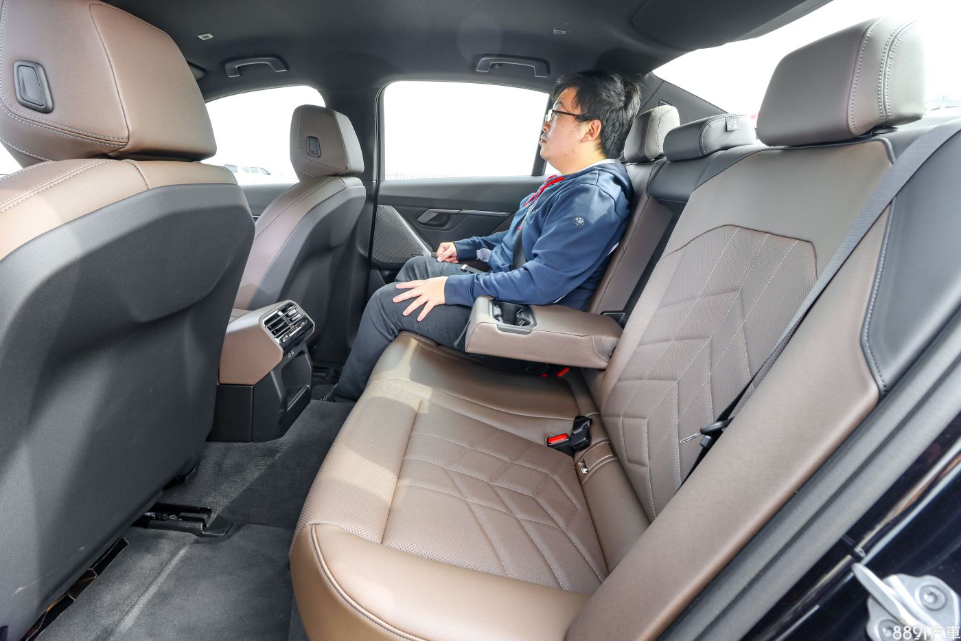 後座空間相當充裕,即便搭配黑色頂篷也未感壓迫。後排座椅設計雖看似平板,其實也有針對腰部支撐做加強,加上椅面長度夠、前緣有加厚,大腿支撐相當扎實,實際乘車好坐舒適。然而對中央乘客而言,新5系列中船寬大、果嶺高聳,明顯壓縮到腿部空間。