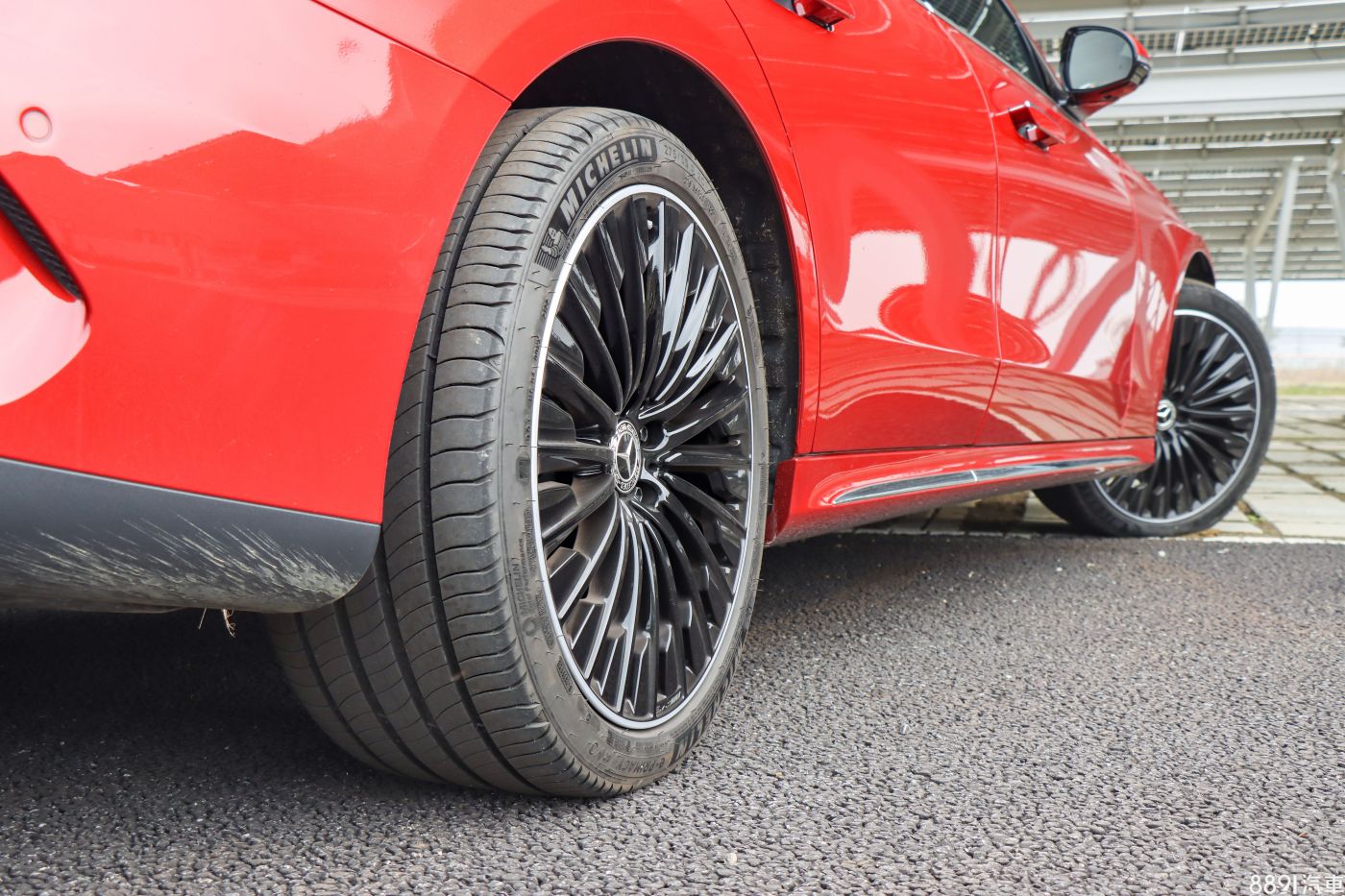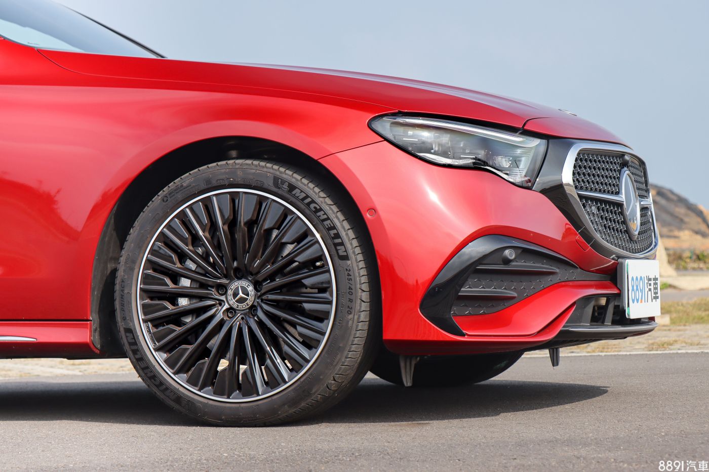選配代碼RVR的20吋AMG鋁圈,黑色多幅式造型,配上銀色外圈,是優雅的運動風,與E的氣質很搭。配胎則為前245/40R20、後275/35R20的米其林e-Primacy原廠OE胎,與車輛本身搭配起來路噪輕微,抓地表現也沒有不足之處。