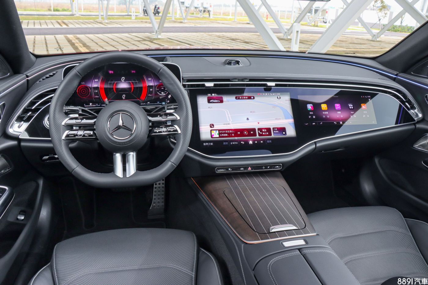 大改款E可以選配Superscreen,是內裝的一大重點,中間14.4吋螢幕和標配尺寸、功能相同,在副駕駛座還會多出一個12.3吋子螢幕,乍看之下整體內裝風格與EQ高階電動車相似,但E透過獨立數位儀表,車內燈光、鍍鉻飾件安排,看起來會更有層次感一些。選配AMG Line外觀套件後,可免費升級AMG Line內裝,有雙肋式方向盤、跑車型座椅、皮質儀錶台包覆等。