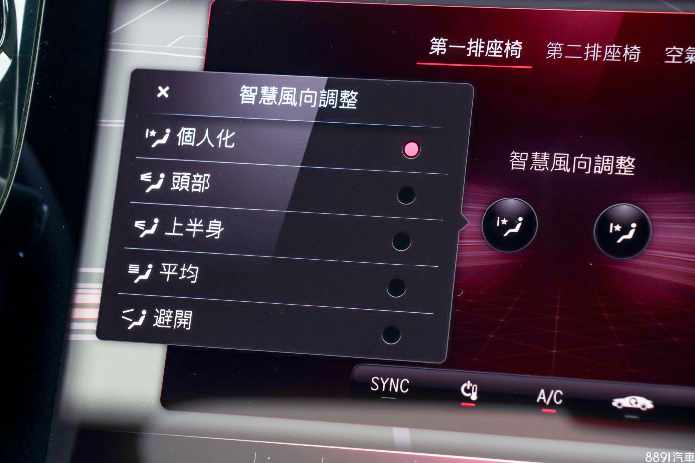 四區恆溫空調包套在豪華Plus選配中,附有主動風量調整功能,可以直接指定吹送方向,自動調整風向,使用起來還蠻便利的。