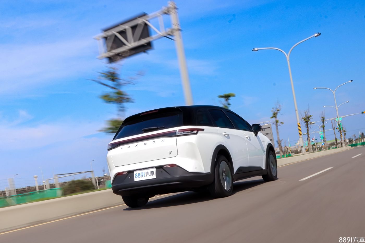 車尾線條趨於方正簡潔,車尾同樣以Luxgen品牌字樣作為識別,亮點版搭載現下流行的橫貫式LED尾燈組,試駕車為黑白雙色塗裝,不過只限亮點版可選。