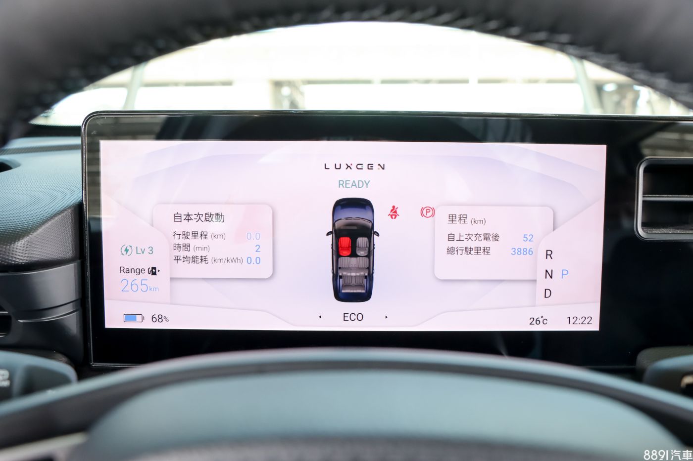 12.3吋全數位儀錶提供時速、檔位、電量、可行駛里程等基本資訊,可惜並不會依駕駛模式之不同,呈現不同的顯示式樣,也無法自定義希望秀在上面的細節信息。