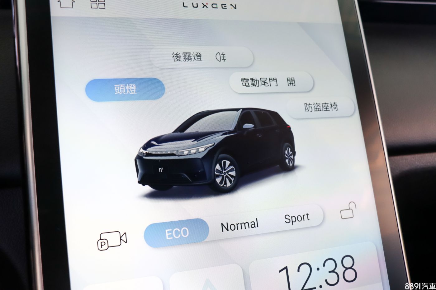 除了有Eco、Normal、Sport三種駕駛模式可選,還可選擇三種電量消耗模式:維持、寵物和露營,維持主要是在未離車上鎖的情況下、長時間保持車輛啟動;寵物為即使離車也能保持空調與螢幕開啟;露營則是維持空調開啟,以上模式均可使用至電量剩下20%為止。