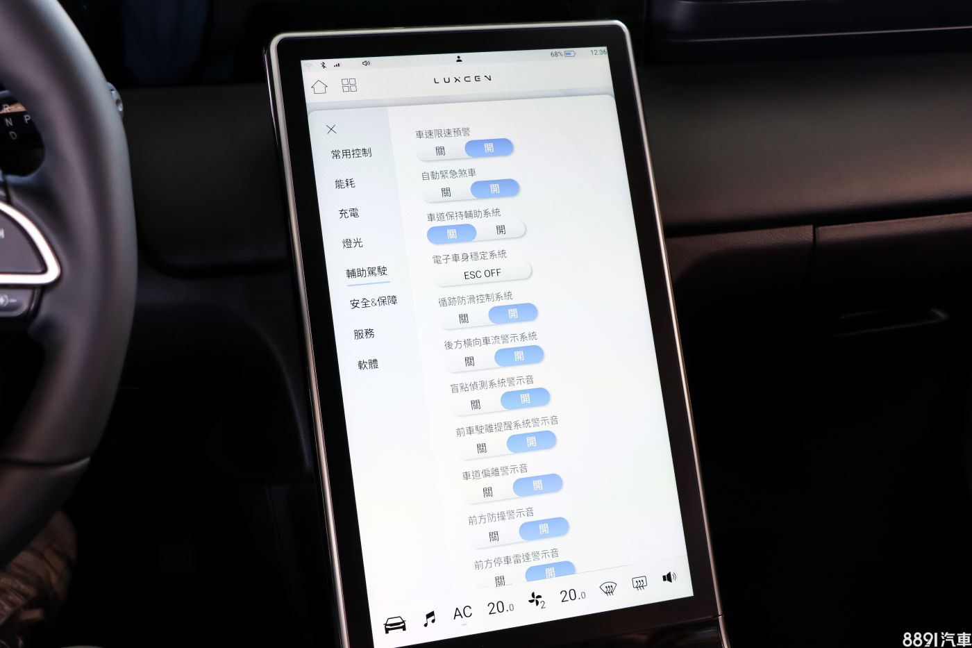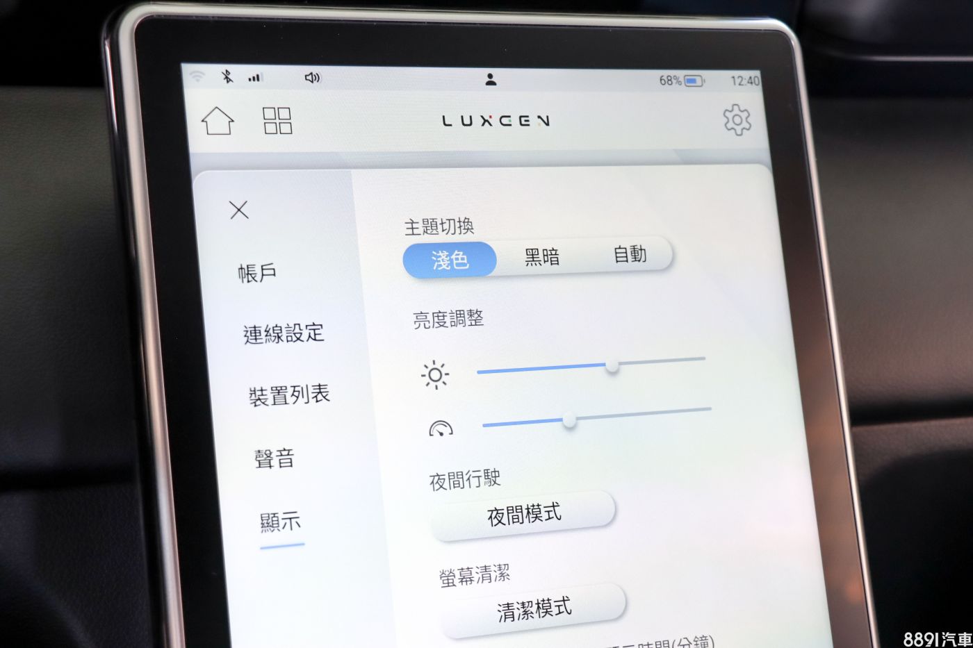 15.6吋中控觸控螢幕除了基本的空調、音響等系統外,頭燈啟閉和駕駛模式選擇、座椅通風等功能也都結合在面板內,這設計讓人聯想到Tesla,而這具螢幕除了大、還有其他優點,首先有中文介面不怕看不懂,功能介面邏輯設計也十分好上手,反應速度更是出乎我意料的很可以~重點是試駕過程中並沒有反光、影響判讀體驗的狀況發生。