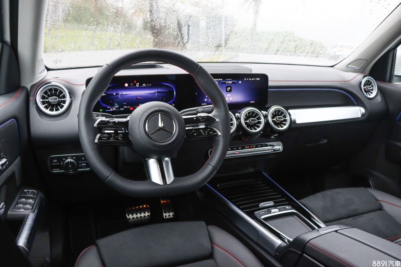 EQB 300車內肉眼可見的變動就是新款AMG方向盤,跟上最新「蜻蜓造型」家族化設計,再來是因應新款MBUX 2.0系統,取消了中央鞍座觸控板,其餘大抵輪廓與改款前相同。內裝精緻我覺得不錯,個人唯一不喜歡的是AMG Line配木紋飾板,換成類碳纖維、星芒造型看起來會更有運動感。