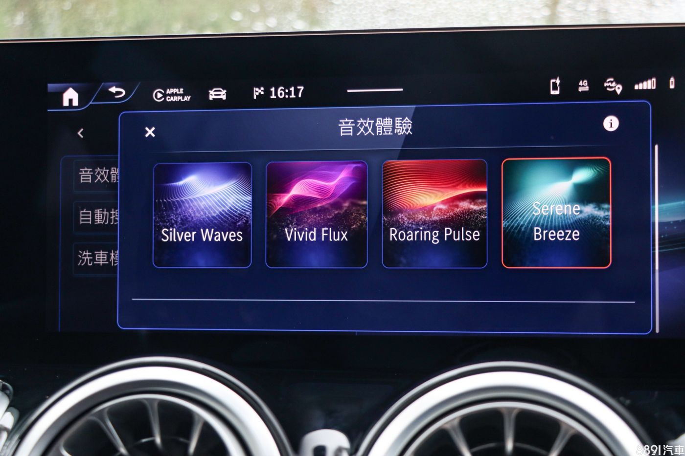 在配備Burmester音響之後,EQB 300擁有4種電動車音效可選,可以配合油門踏板深淺、加速狀態,讓音調有不同抑揚頓挫,其中最特別的就是Serene Breeze,開車時播放著徐徐鳥叫聲,12支喇叭聽起來立體感十足,配上好天氣,以及絕佳的隔音品質,讓這趟試駕多了點輕鬆的出遊感。