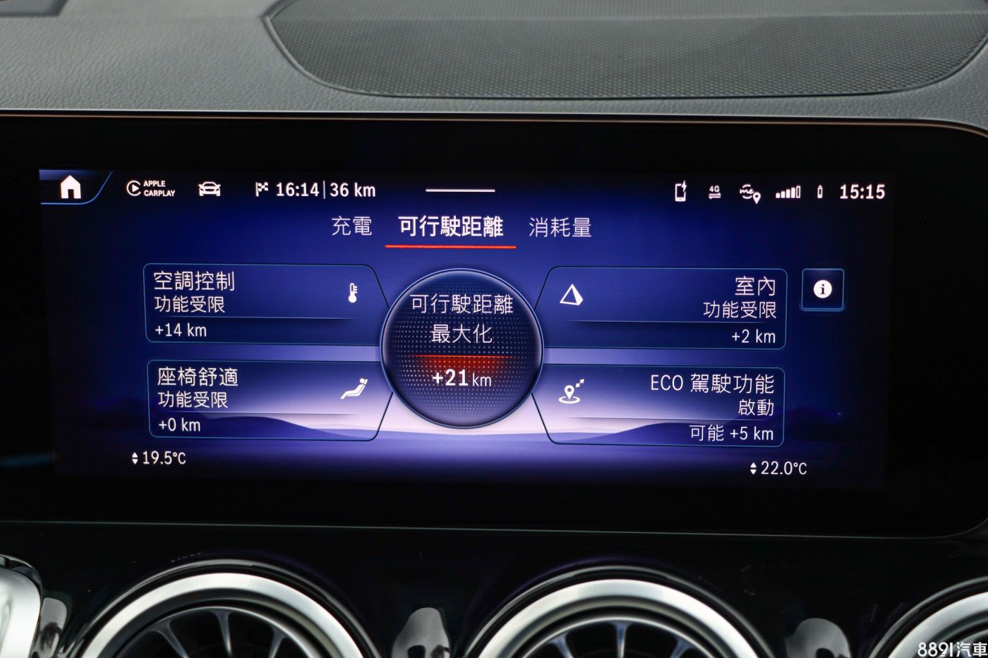 這次小改款在EQB 300部分動力並無改變,一樣是搭載66.5kWh電池模組,配上前後雙馬達四輪驅動,但有趣的是續航里程卻悄悄提升,同樣WLTP標準下從過往的423km,改款後變成447km,多了24km。主因在於小改款多了Eco+功能,按下螢幕中央可行駛距離最大化,就會把空調、駕駛模式調整成最節能狀態,就連中央螢幕也一併關閉,簡單來說就是把車內配備用電降到最低來換取續航里程,雖然規格上看起來更漂亮了,但個人不會想用,畢竟開賓士就是要舒舒服服。