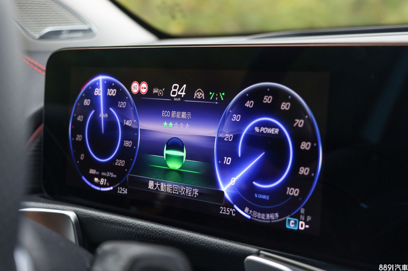 動力數據相同,在衝刺下的表現也和改款前無異,據過往8891試駕資料,EQB 300實測0~100km/h成績為7.7秒,這次試駕也測出完全相同的成績,彈射起步也是一氣呵成,在四驅系統及Turanza T005 OE胎搭配下,循跡關閉狀態起步毫無打滑,且連測兩趟成績相同,加速表現夠快夠穩定。