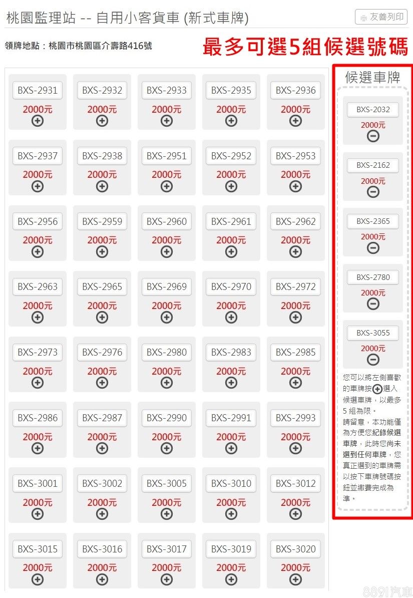 除了熱門車牌需透過標牌取得外,剩餘牌號就會打到各區監理所,開放給所有人選號,採「先搶先贏」制,同樣可在監理服務網線上作業,由於收費一律2000元,無須花大錢與人競價,又能夠挑到還不錯的車牌號碼,算是一種高C/P值的作法,因此大多數人都願意選擇此種領牌方式!