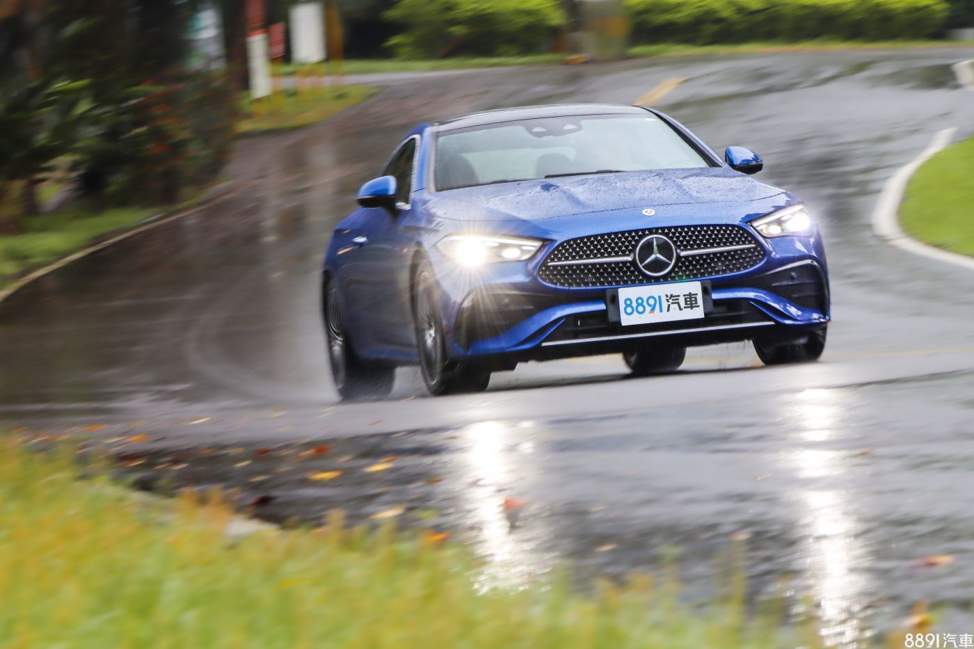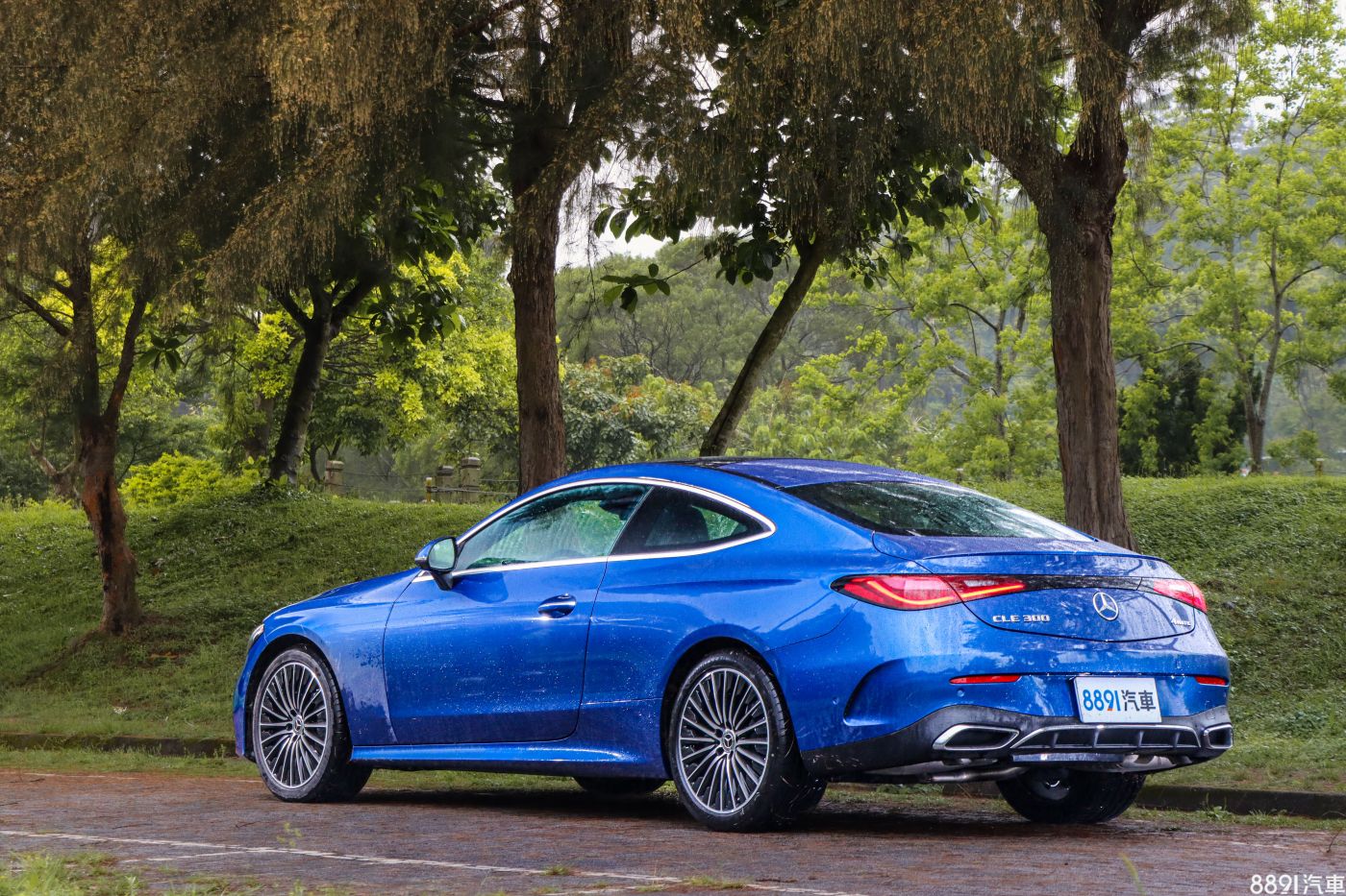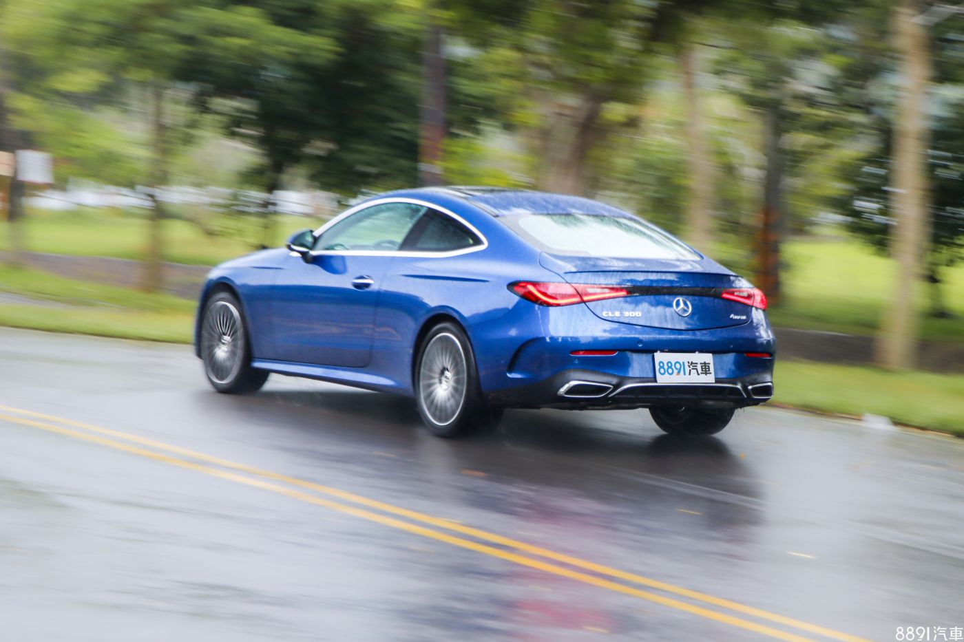從這個角度望去,是我覺得CLE Coupe最美的地方,自B柱以後迅速向下傾斜、並一路向後延伸的曲線,搭配高聳的腰線、運動化保桿以及辨識度高的尾燈,真的好看!稍嫌可惜的是,矩形尾管是封閉的、完全是「裝飾」用,對我來說,如果是真實排氣管,會更符合跑車的精神!